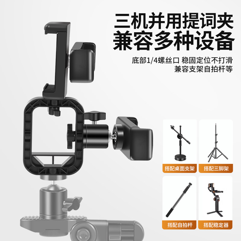 多机位手机直播提词器支架口播专业拍摄支架双面手机夹桌面支撑架落地式三脚架通用多功能拍视频字幕教学