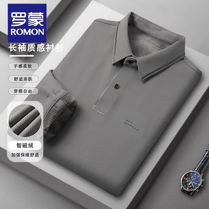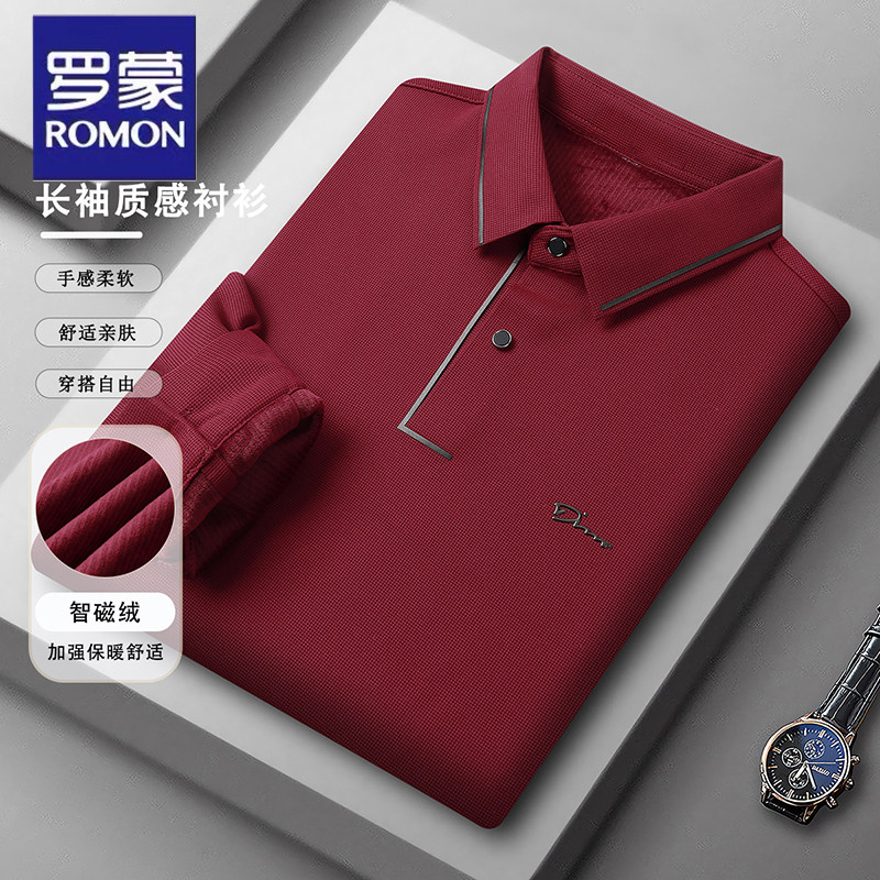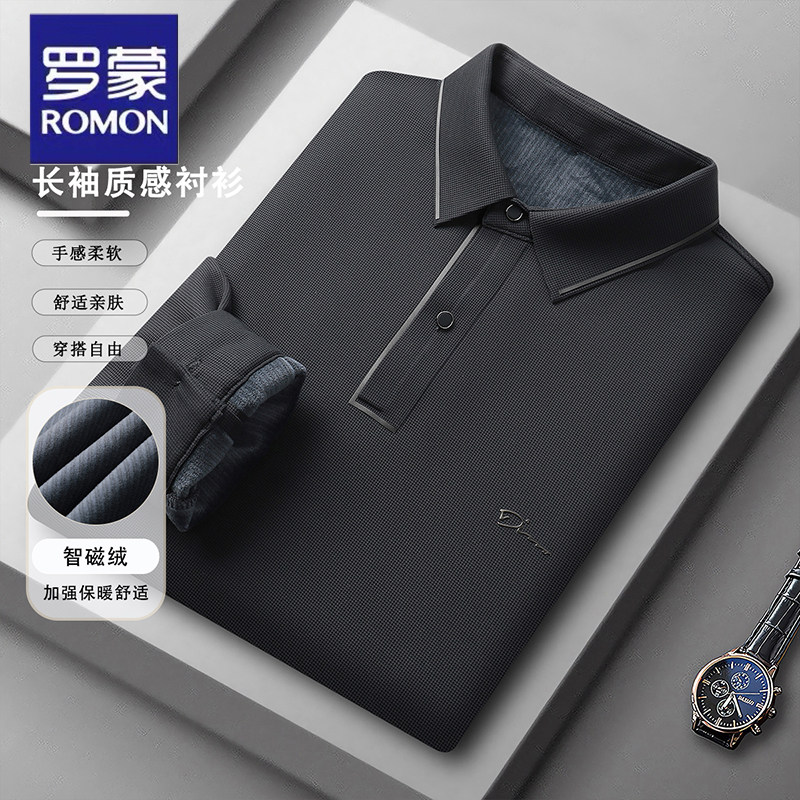 罗蒙加绒加厚polo衫长袖t恤男士秋冬季商务休闲弹力抗皱打底衫