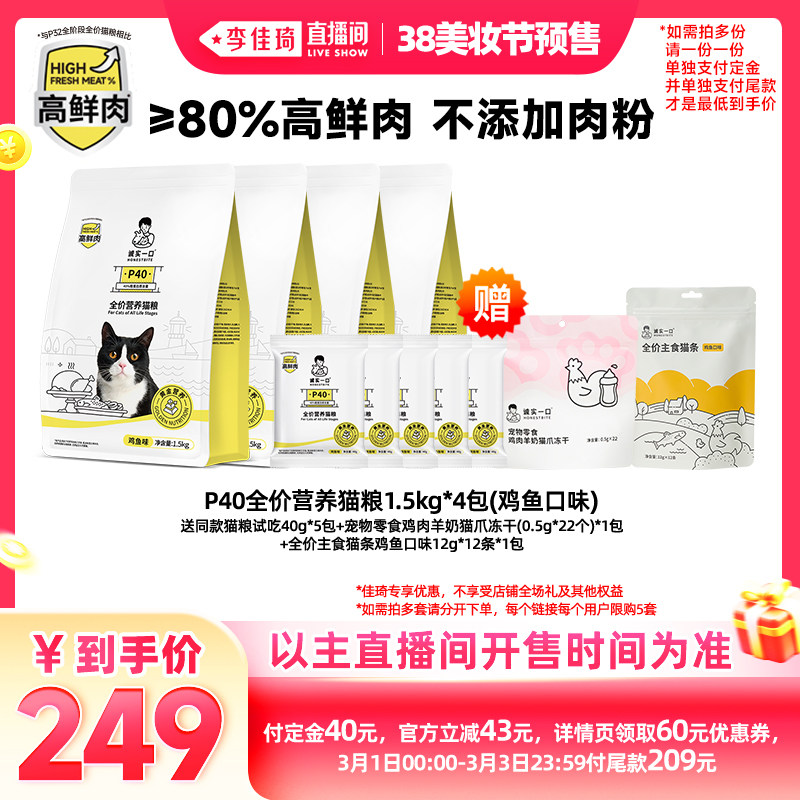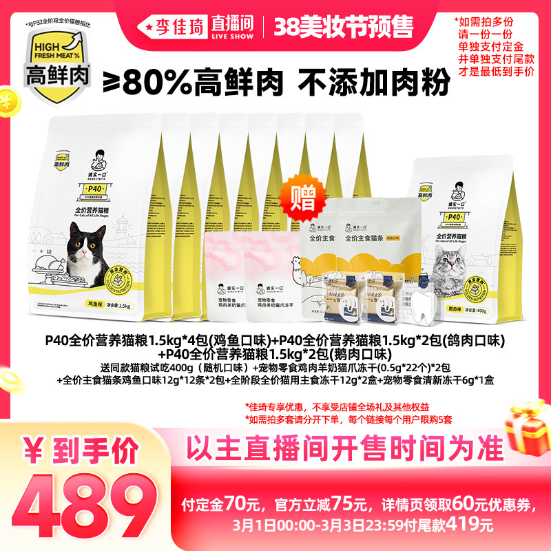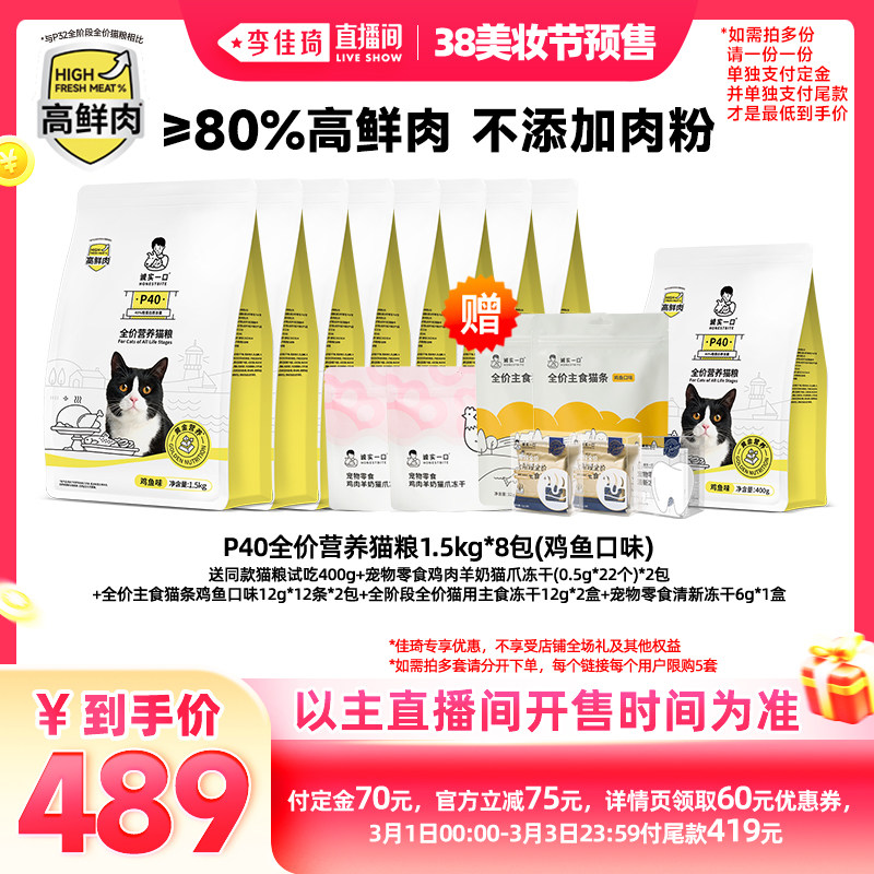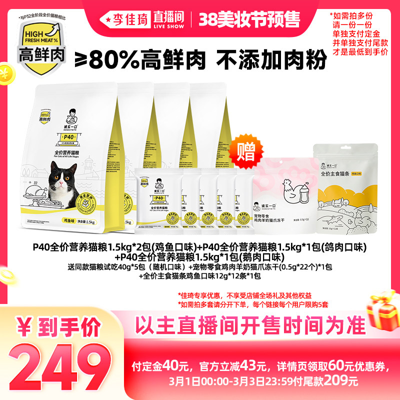 【加购2月24号李佳琦美妆节】诚实一口P40鲜肉成猫粮全价乳鸽猫粮