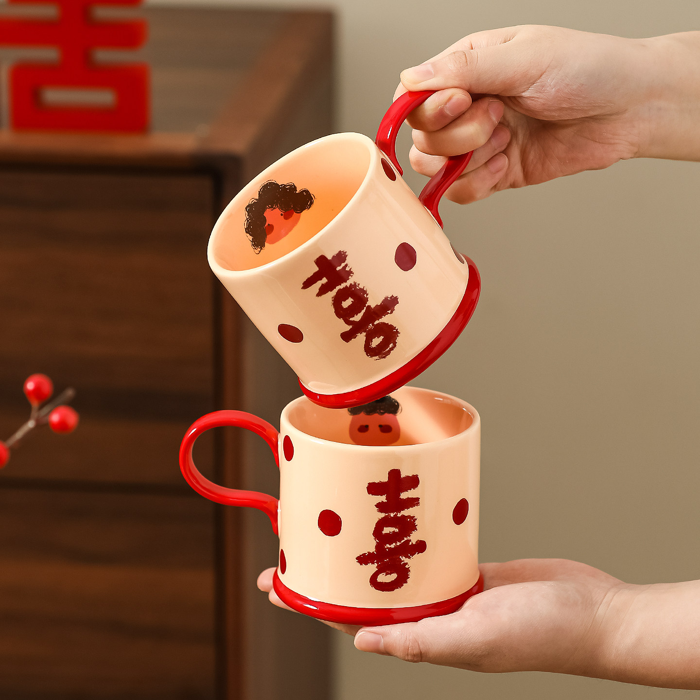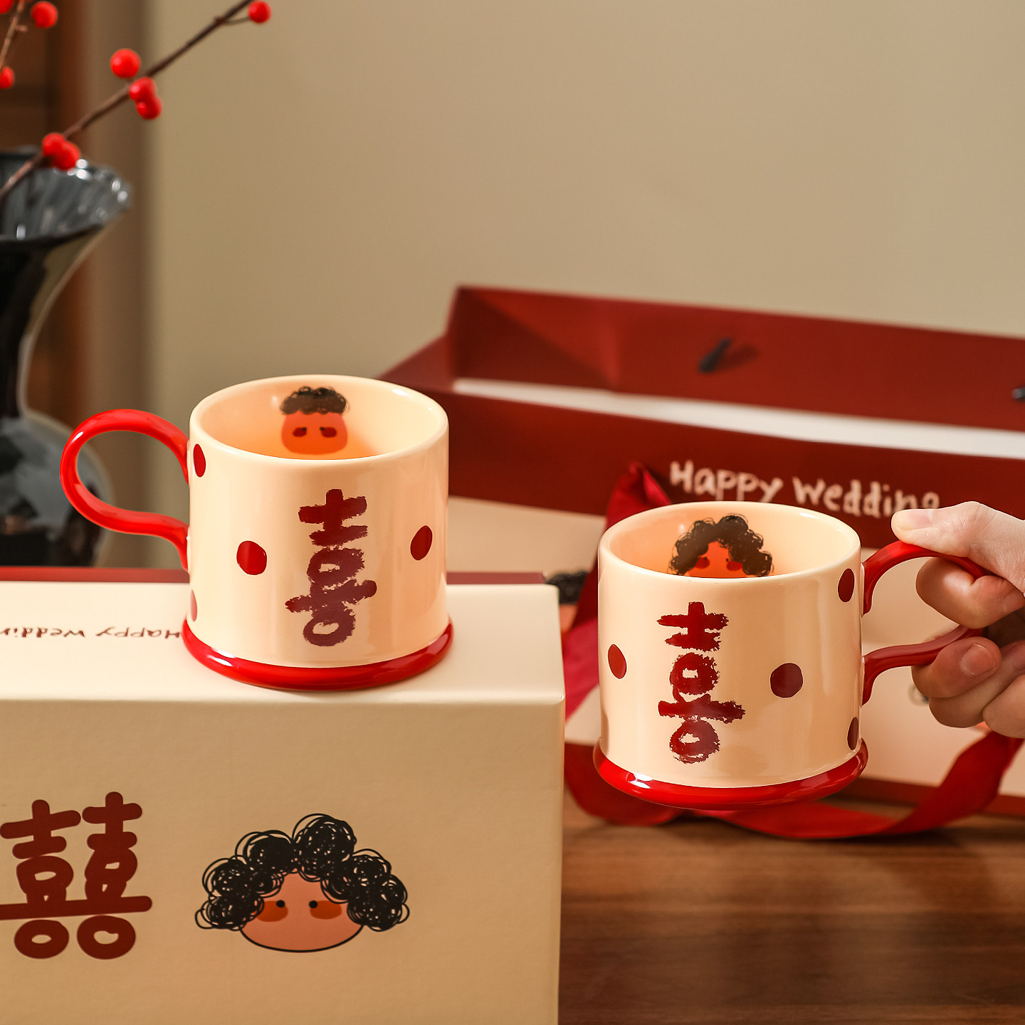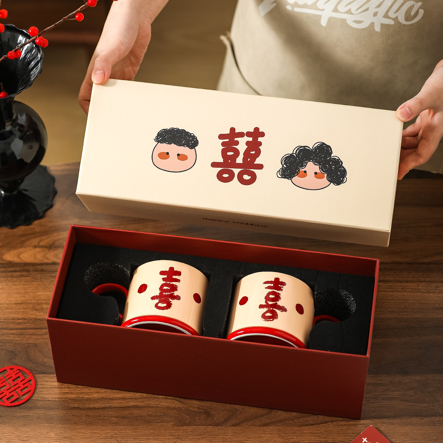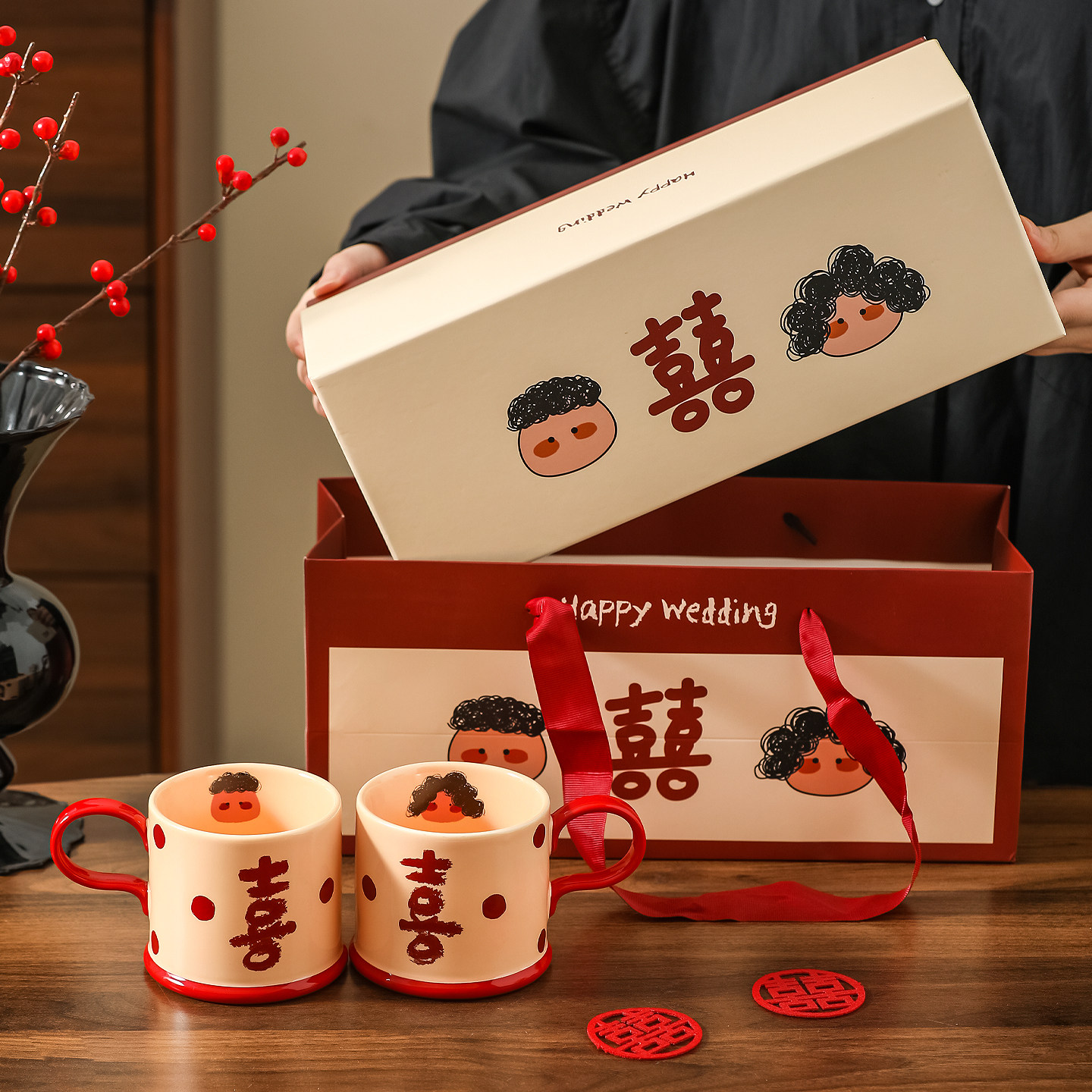 川岛屋新婚礼物送新人情侣水杯高级感马克杯喜字订婚结婚伴手礼盒
