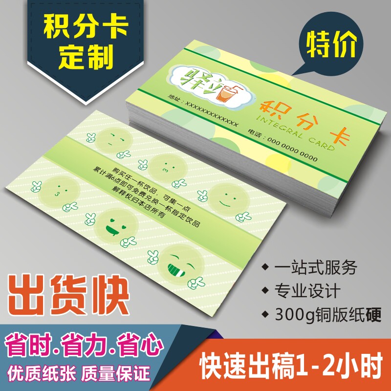 积分卡奶茶店奖励卡小学生儿童美发剪发次数卡洗车卡制作定制