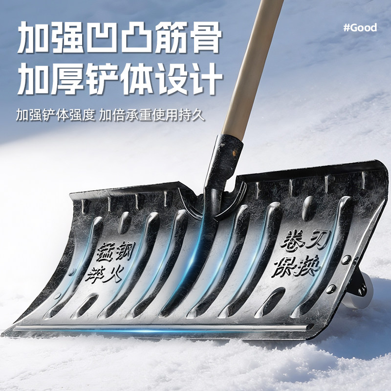 除雪神器轮式推雪铲多功能铲雪除雪工具锰钢加厚除冰雪板轱辘雪锹