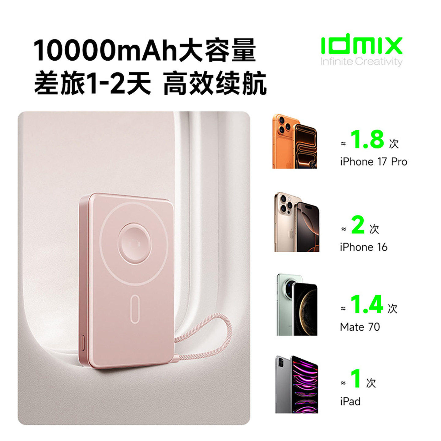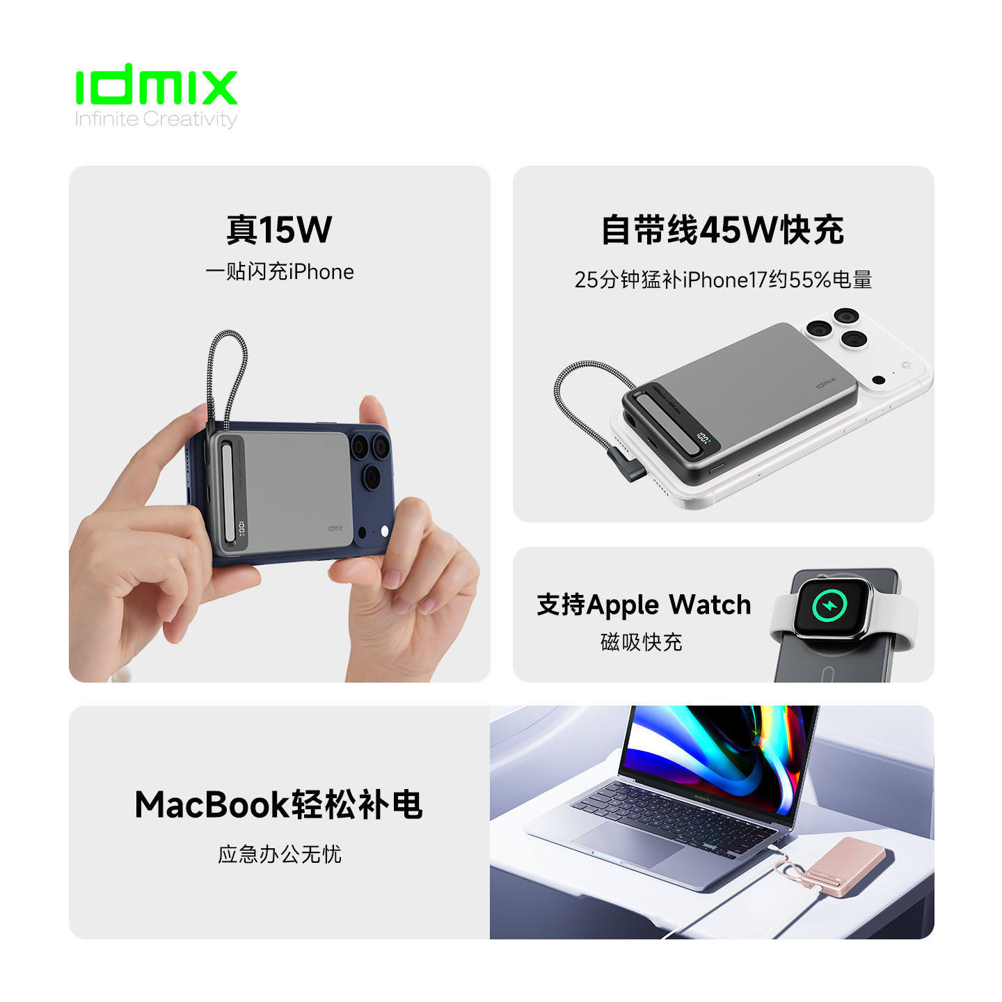 【国家3C认证】idmix自带线磁吸充电宝45W快充适用iPhone17苹果16可携登机Apple watch手表MacBook移动电源