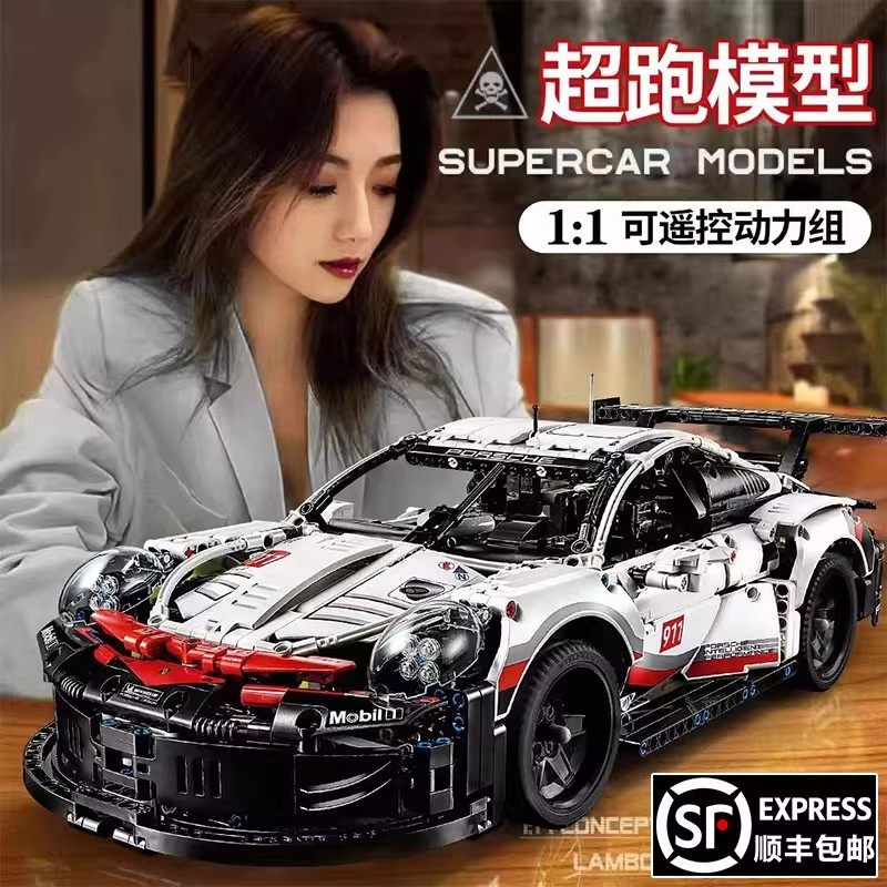 保时捷911积木拼装GT3赛车模型跑车汽车益智玩具男孩礼物兼容乐高