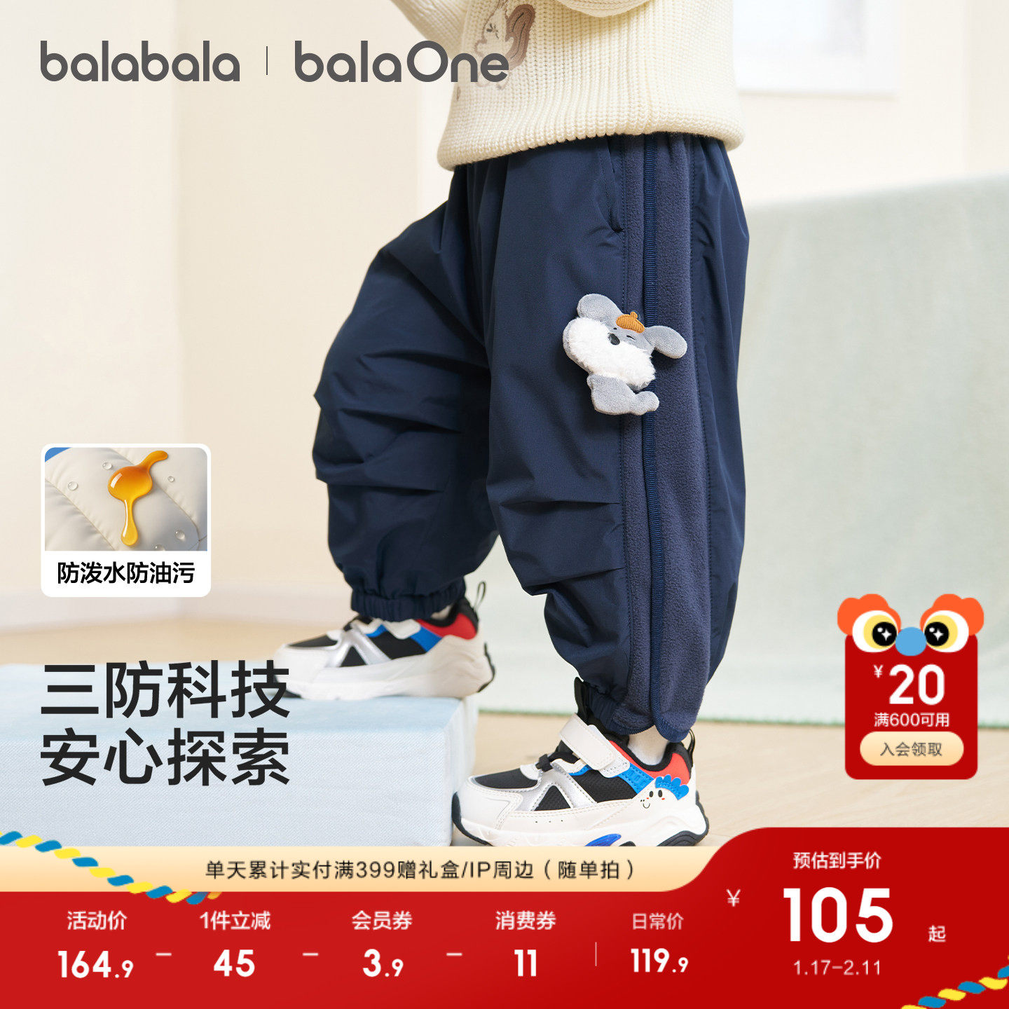 巴拉巴拉童装宝宝长裤加绒保暖伞兵裤男女童2025新款冬装儿童裤子