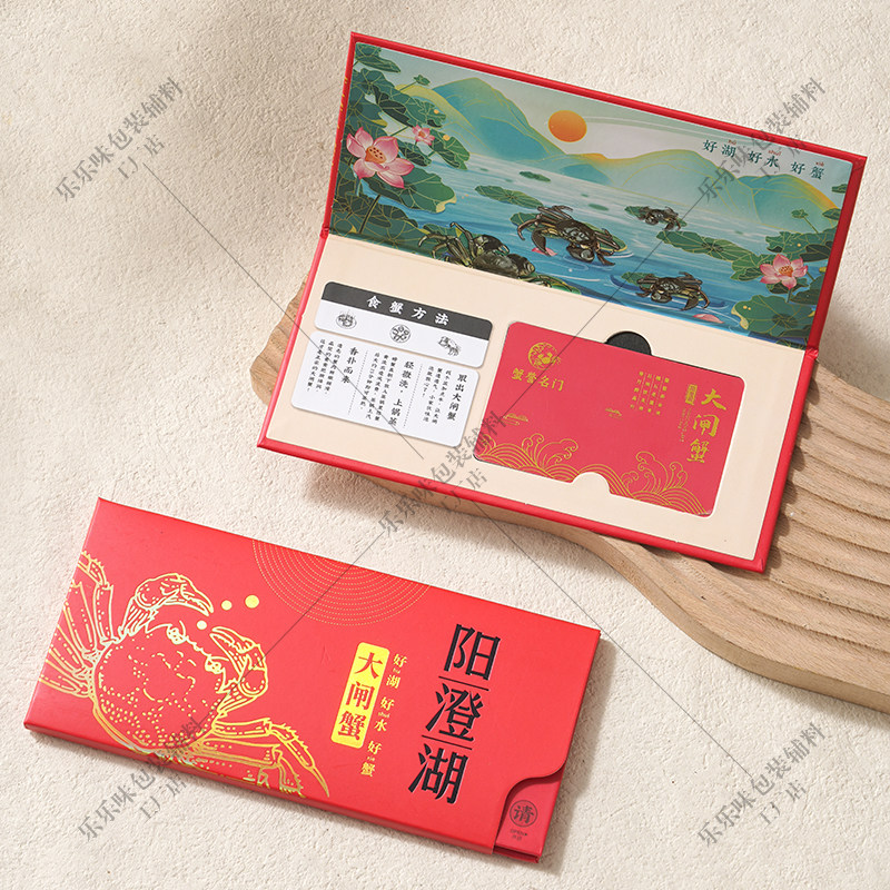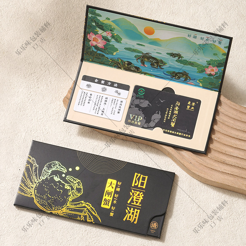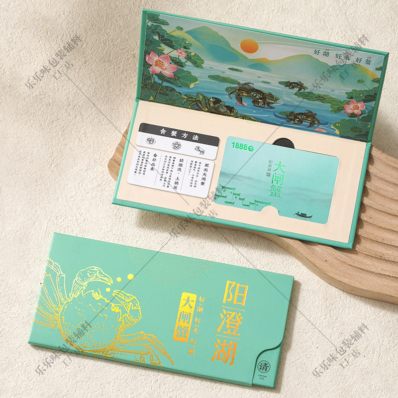 现货大闸蟹提货卡包装盒抽拉款蟹卡封套中秋送礼会员卡螃蟹礼品卡
