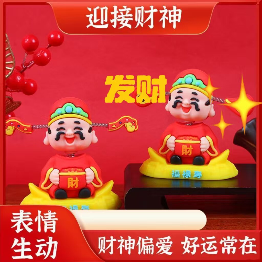 财神爷太阳能摇头汽车摆件办公室家用礼物车载解压招财
