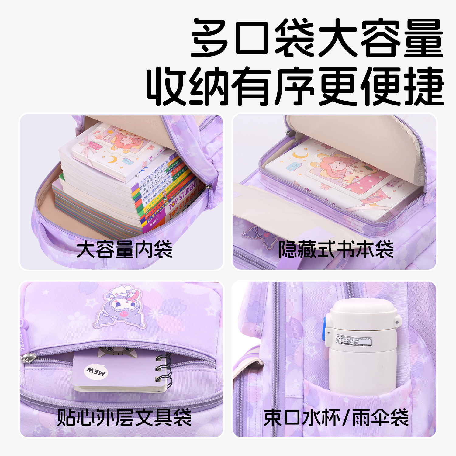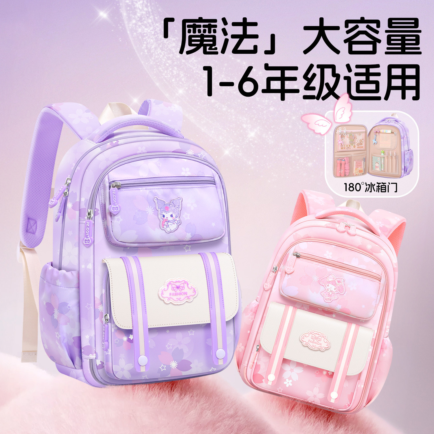 九州猫2025新款小学生书包女孩到六年级女童冰箱式开门减负护脊女生儿童超轻便防水轻量化双肩背包大容量