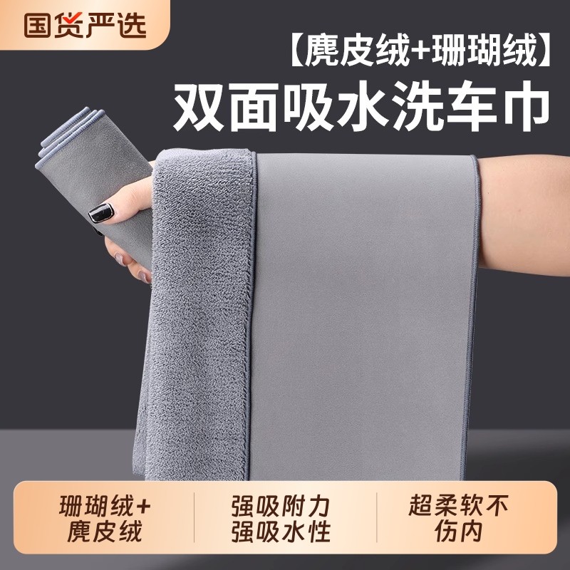 洗车毛巾擦车巾专用吸水汽车内饰车内麂皮抹布不掉毛双面加厚高级