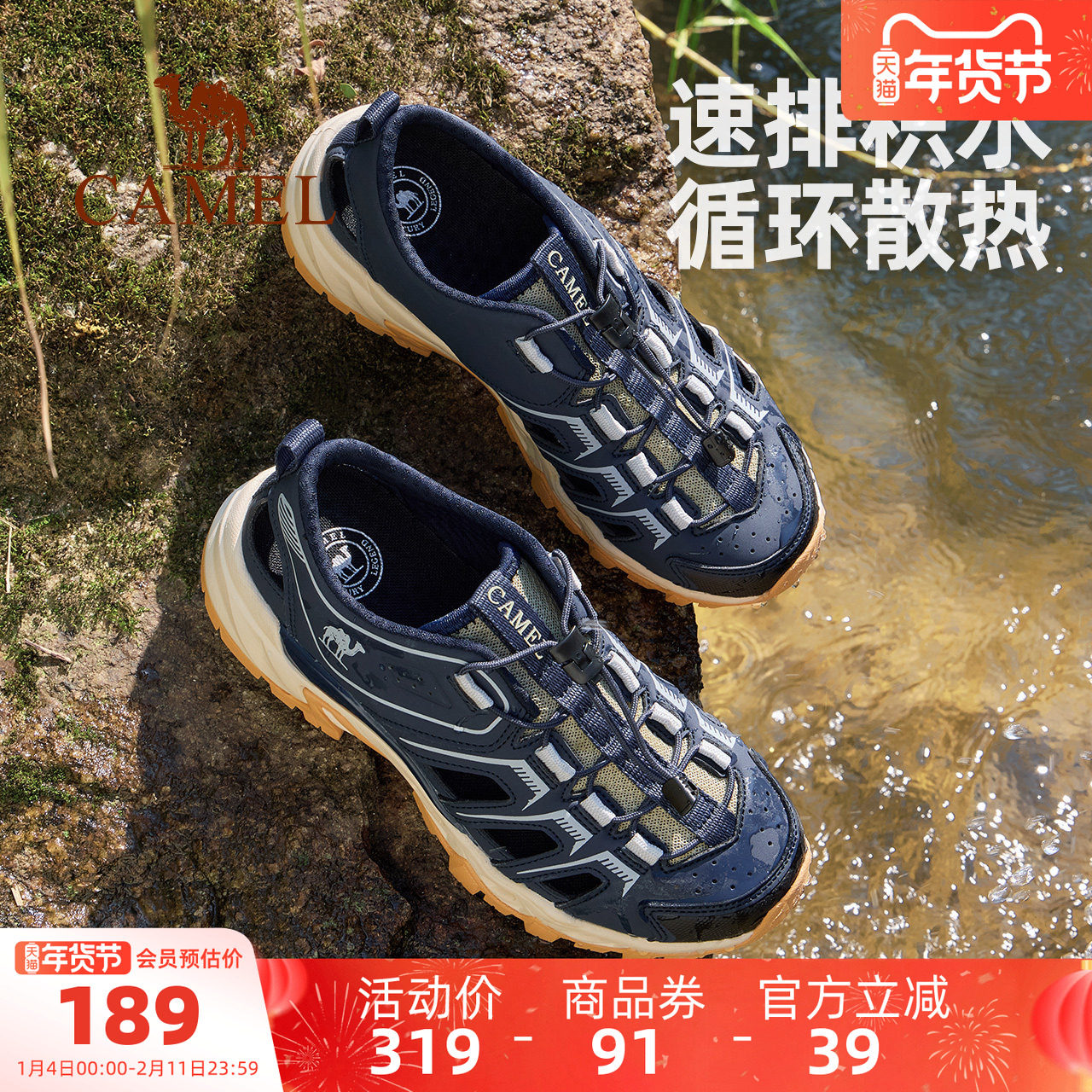 骆驼女鞋2025夏季新款户外运动凉鞋女款透气镂空沙滩鞋涉水溯溪鞋