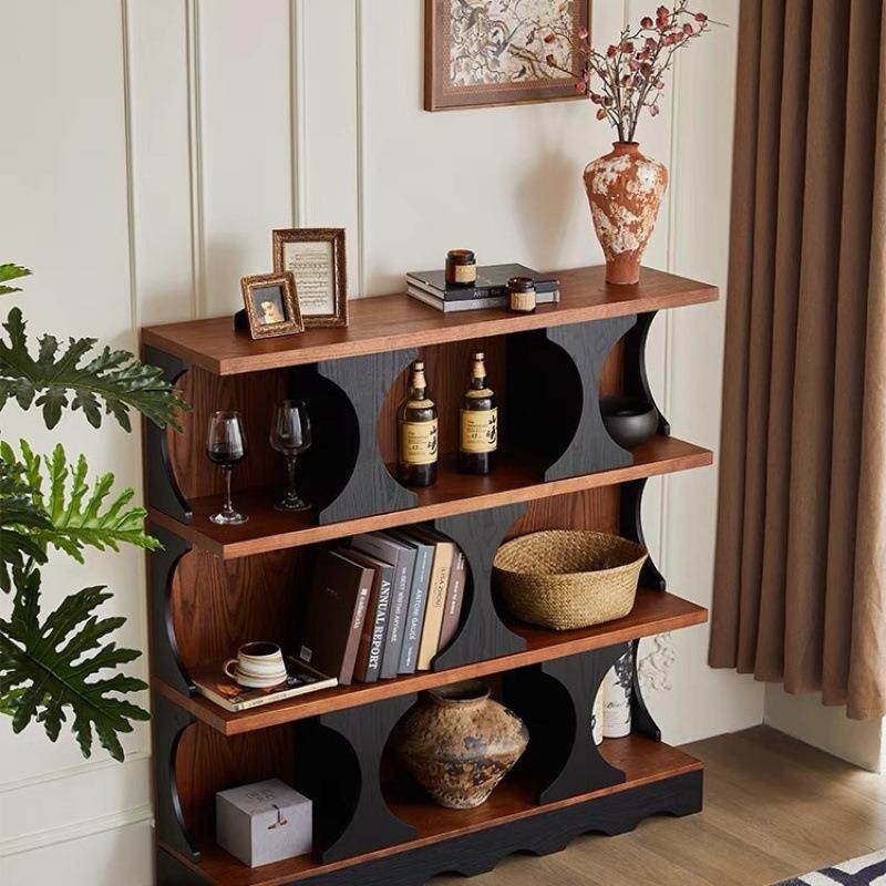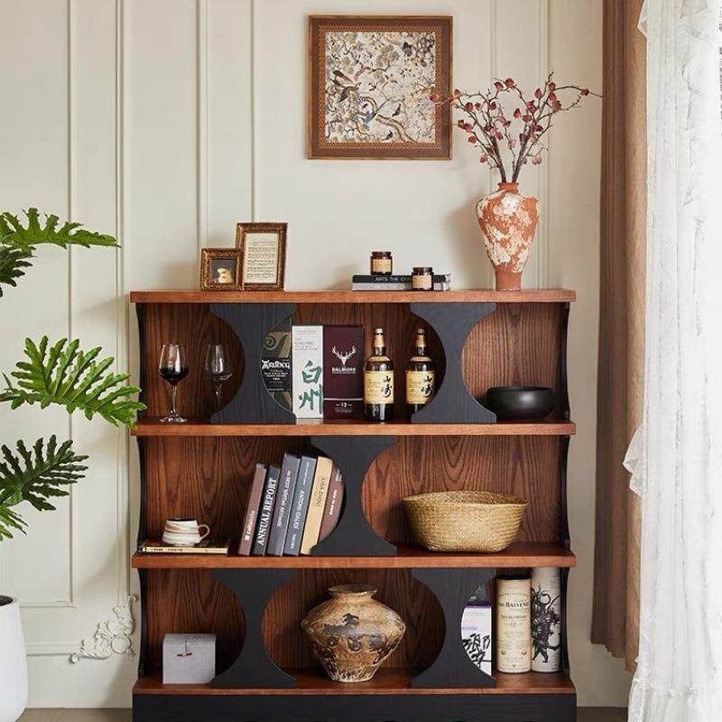 法式中古风书柜小户型家用餐边柜复古储物柜书架实木斗柜玄关柜