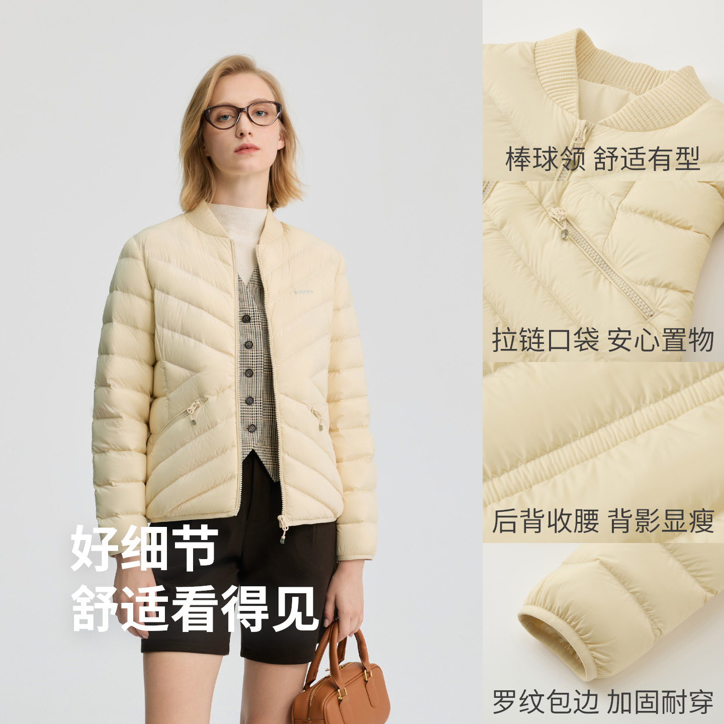 BINJORA冰洁95绒棒球领短款轻盈修身2025新款轻薄羽绒服