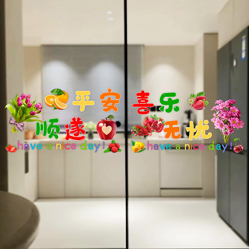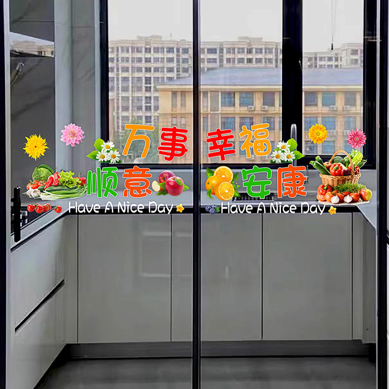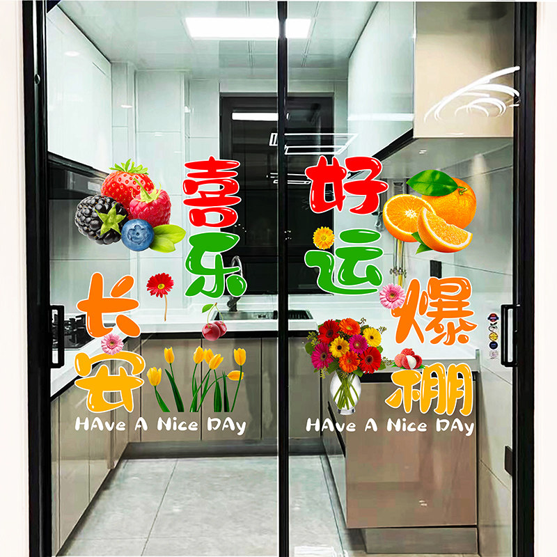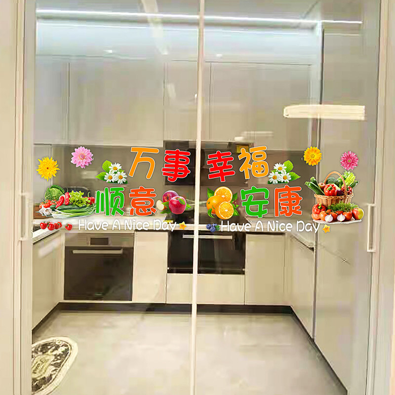 创意厨房推拉门贴纸玻璃门防撞贴画卡通窗花新房瓷砖装饰静电贴膜