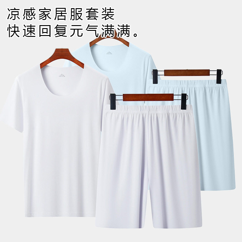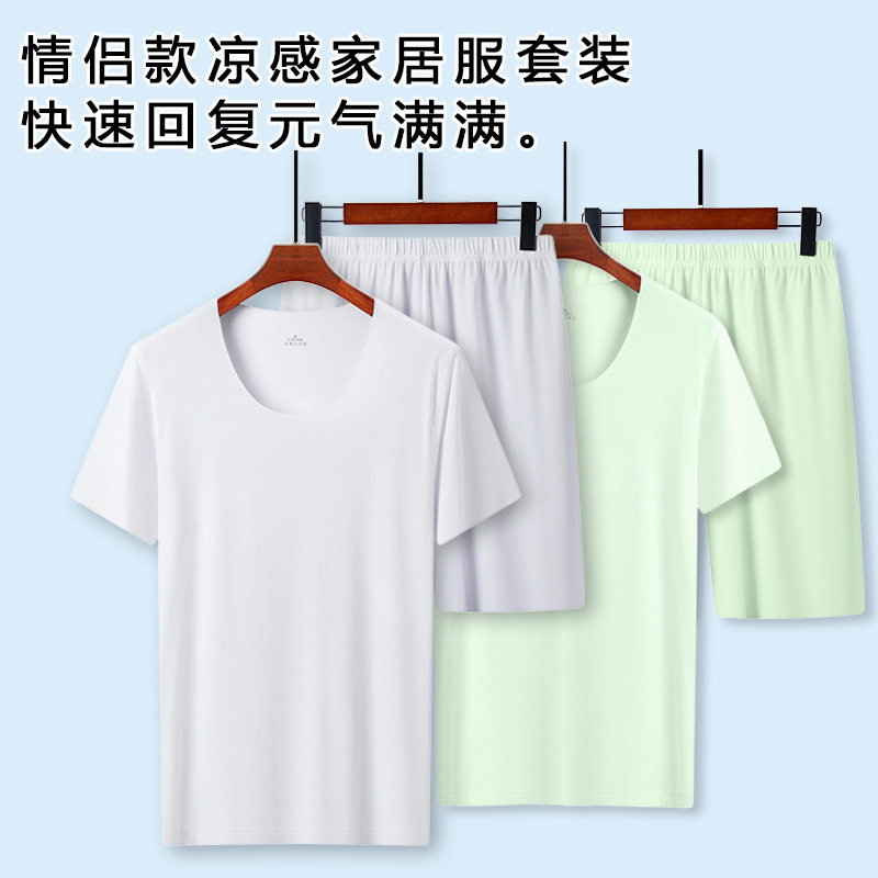情侣睡衣夏季男士女士冰丝家居服套装简约宽松休闲户外运动套装