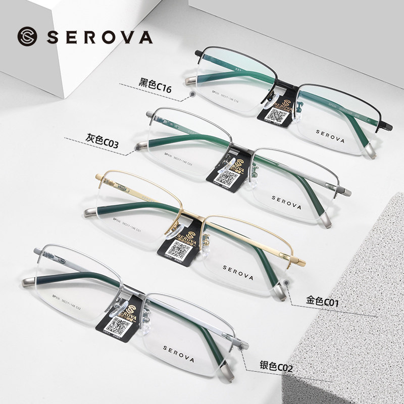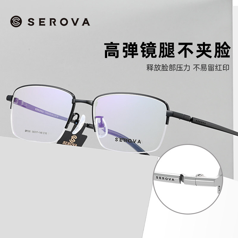 施洛华近视眼镜框男大脸商务超轻半框眼镜架钛架防蓝光配镜SP936