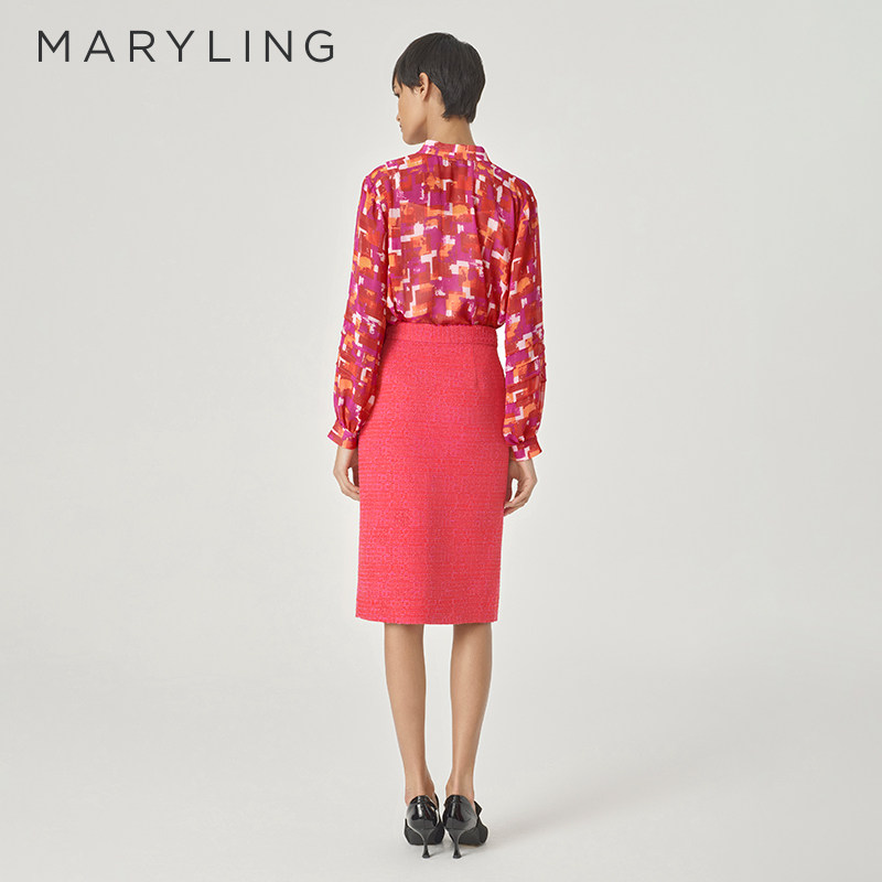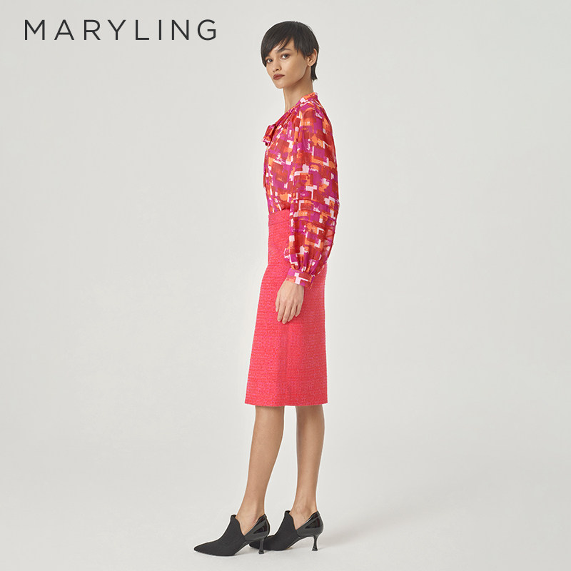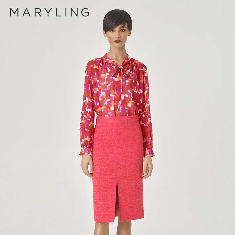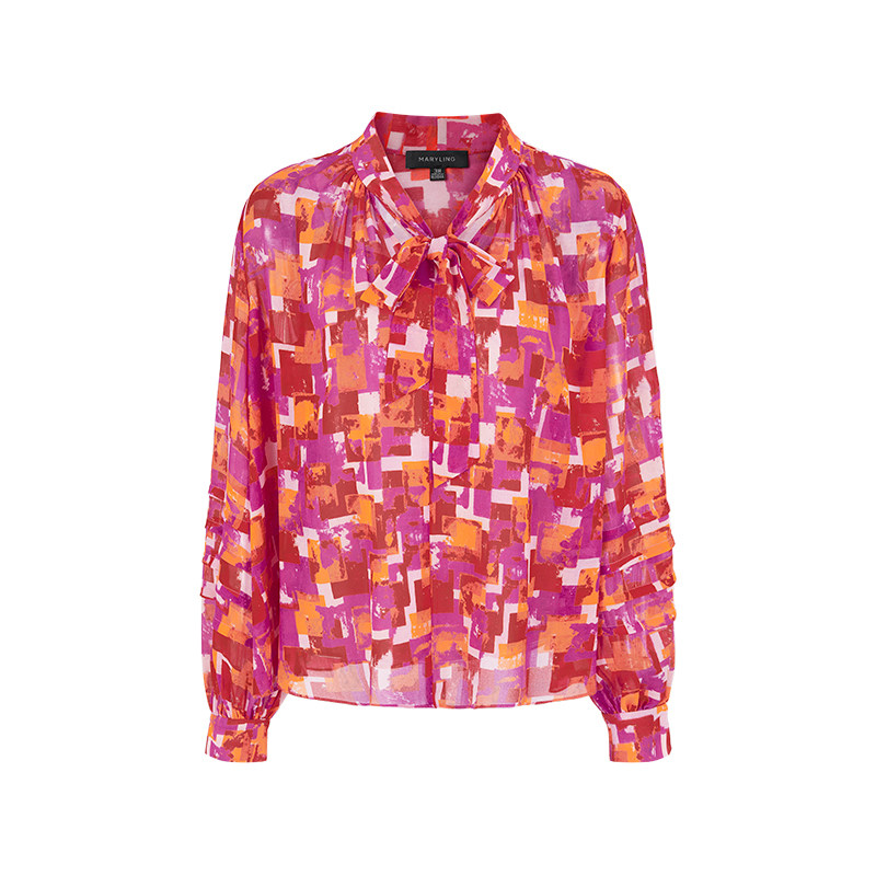 MARYLING玛俪琳24春新品【绯红胭脂】蝴蝶结印花上衣A1EAW20070