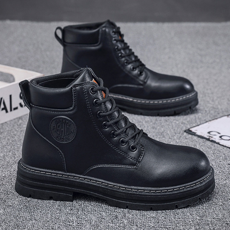 海澜之家黑色马丁靴男款秋冬季加绒低帮休闲皮鞋男士厚底工装鞋子