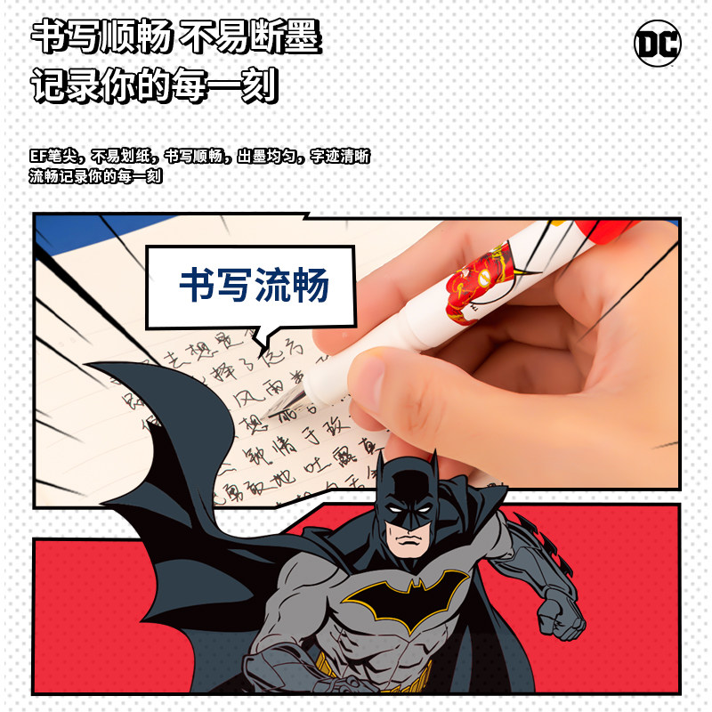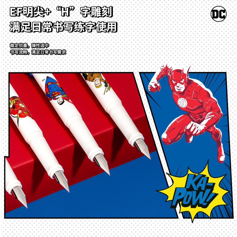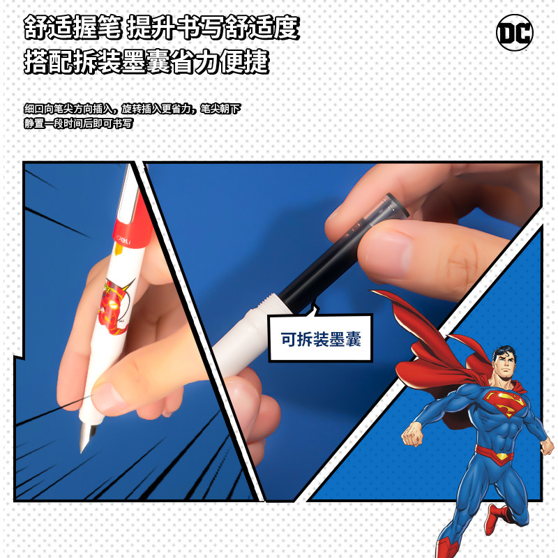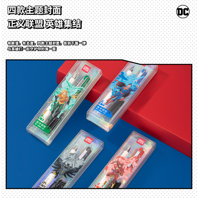 得力钢笔DC正义联盟联名学生用练字钢笔正姿初学者可擦纯蓝男女孩小学生用练字超人蝙蝠侠送可替换墨囊钢笔
