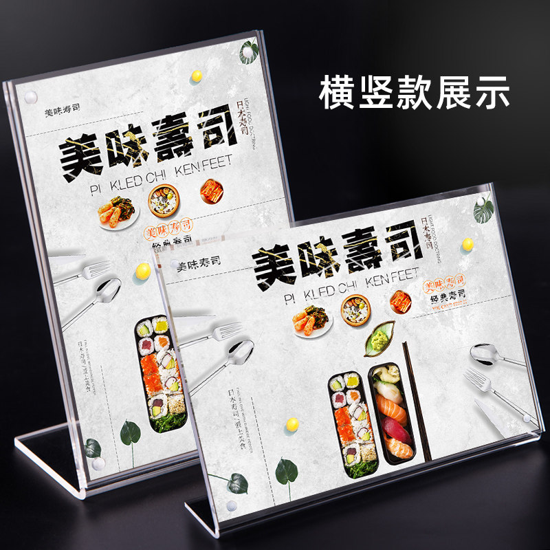 L型亚克力强磁台卡台签台牌桌牌桌签酒水牌价目牌餐牌席位牌菜单牌立牌展示牌会议牌广告牌A4A5A6