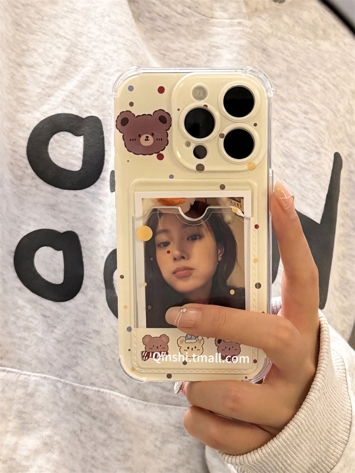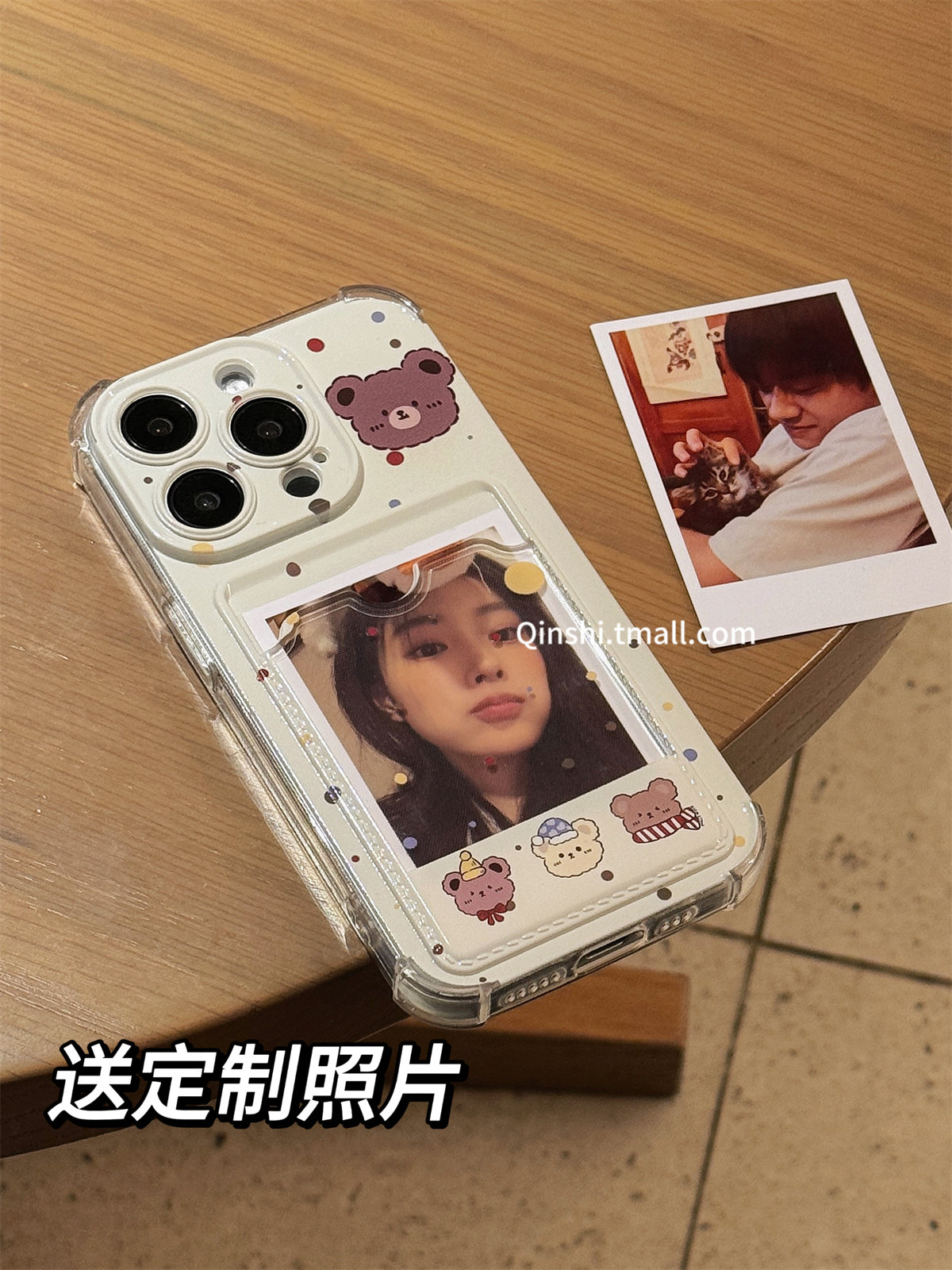 勤仕 卡通小熊相框卡包苹果16手机壳适用iphone15新款14promax女款13可爱DIY定制照片12小众11硅胶全包防摔软