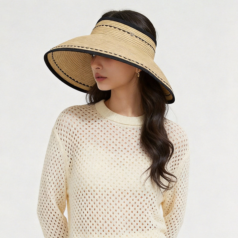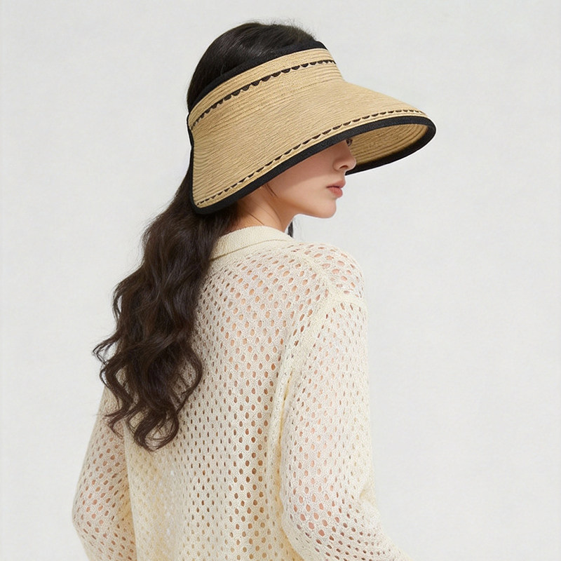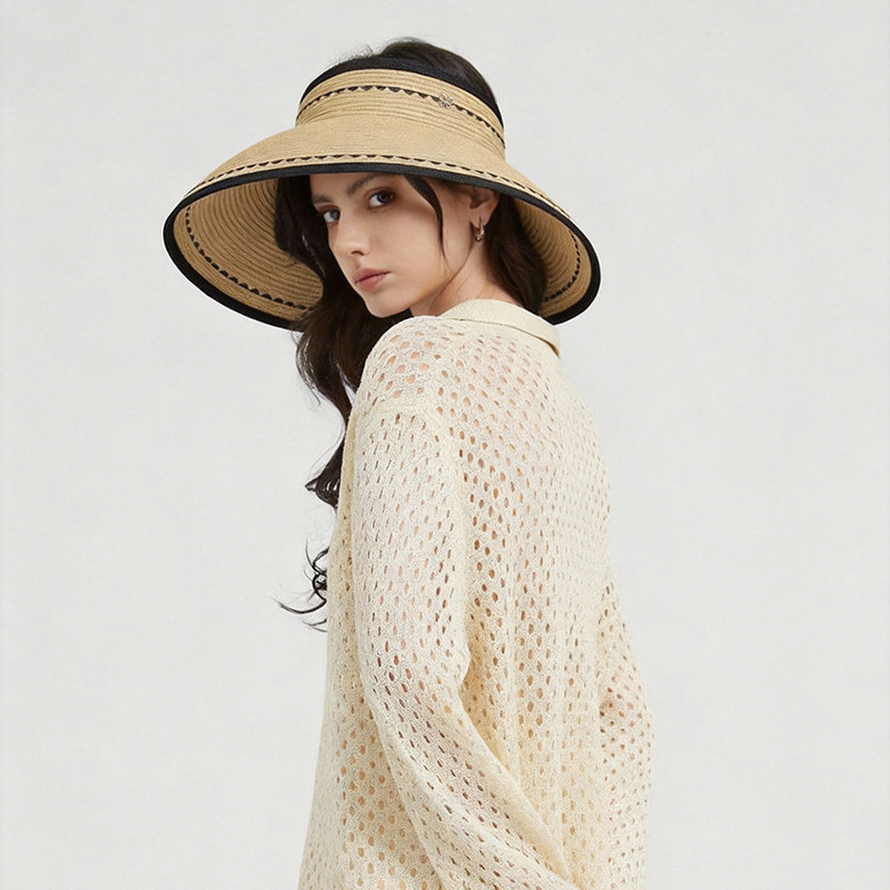 简约经典饰边便携遮阳空顶草帽