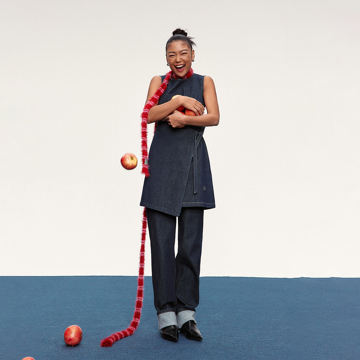 twosweet【超级裤神】四面弹重塑大长腿高腰直筒微喇叭原色牛仔裤