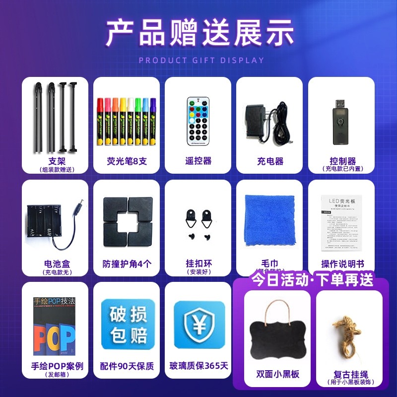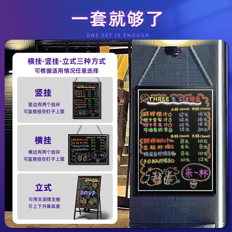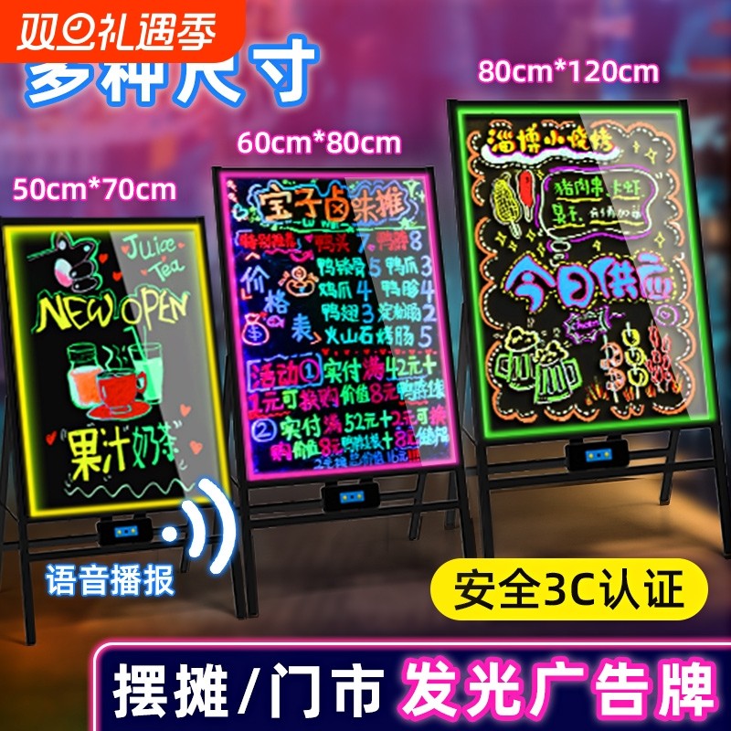 电子led荧光板广告板充电立宣传手写字板地摊灯牌发光广告牌摆摊展示牌小黑板店铺用商用招牌移动悬挂挂式