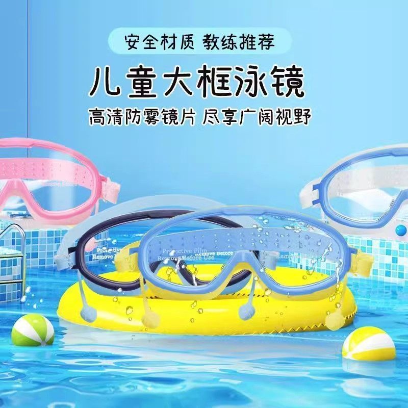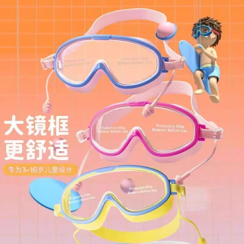 硅胶进口儿童泳镜男女童游泳眼镜防水防雾高清大框潜水镜鼻夹装备