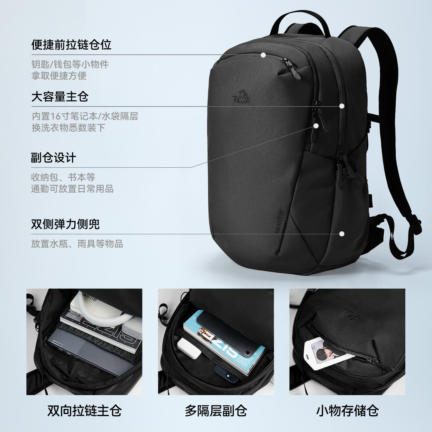 26L大容量 合理分仓 舒适背负 防泼水