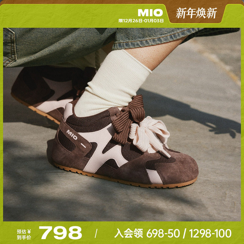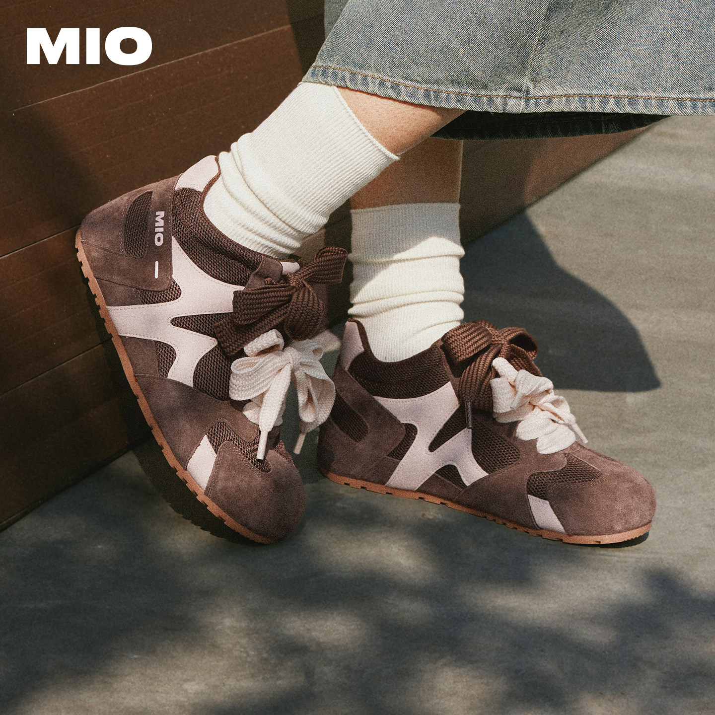 MIO米奥薄底鹦鹉德训鞋女2025秋季新款高帮运动拼色双鞋带休闲鞋