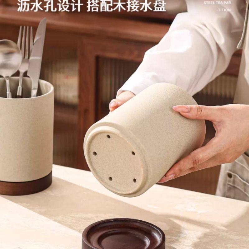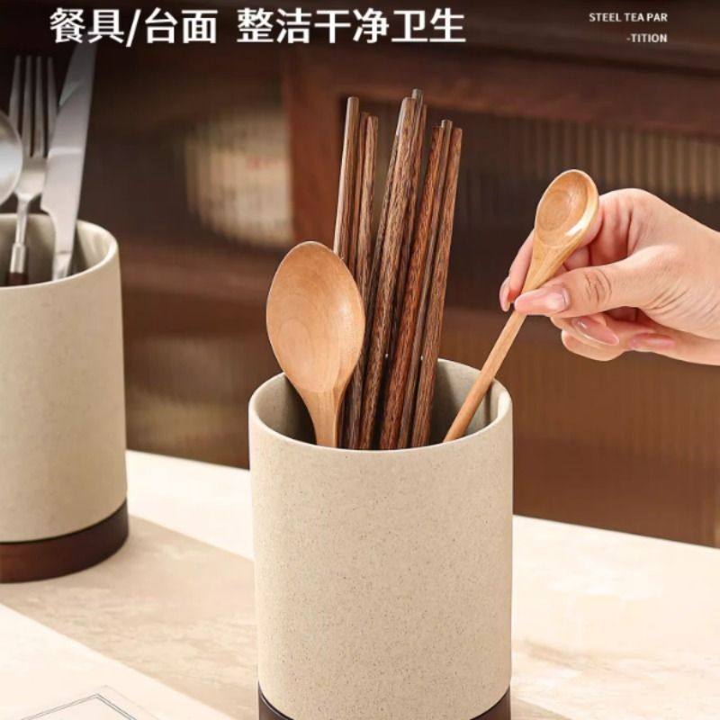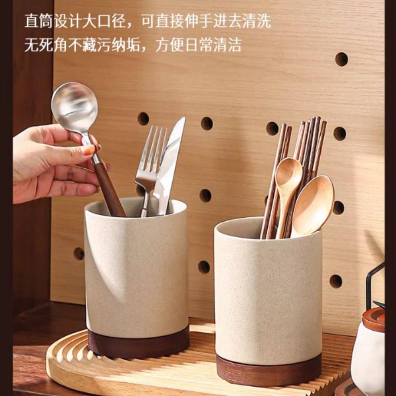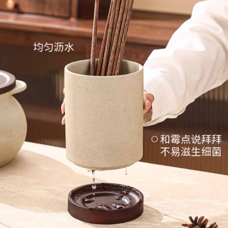 中式复古粗陶筷子筒架家用厨房台面沥水防霉筷勺刀叉筷子篓收纳盒