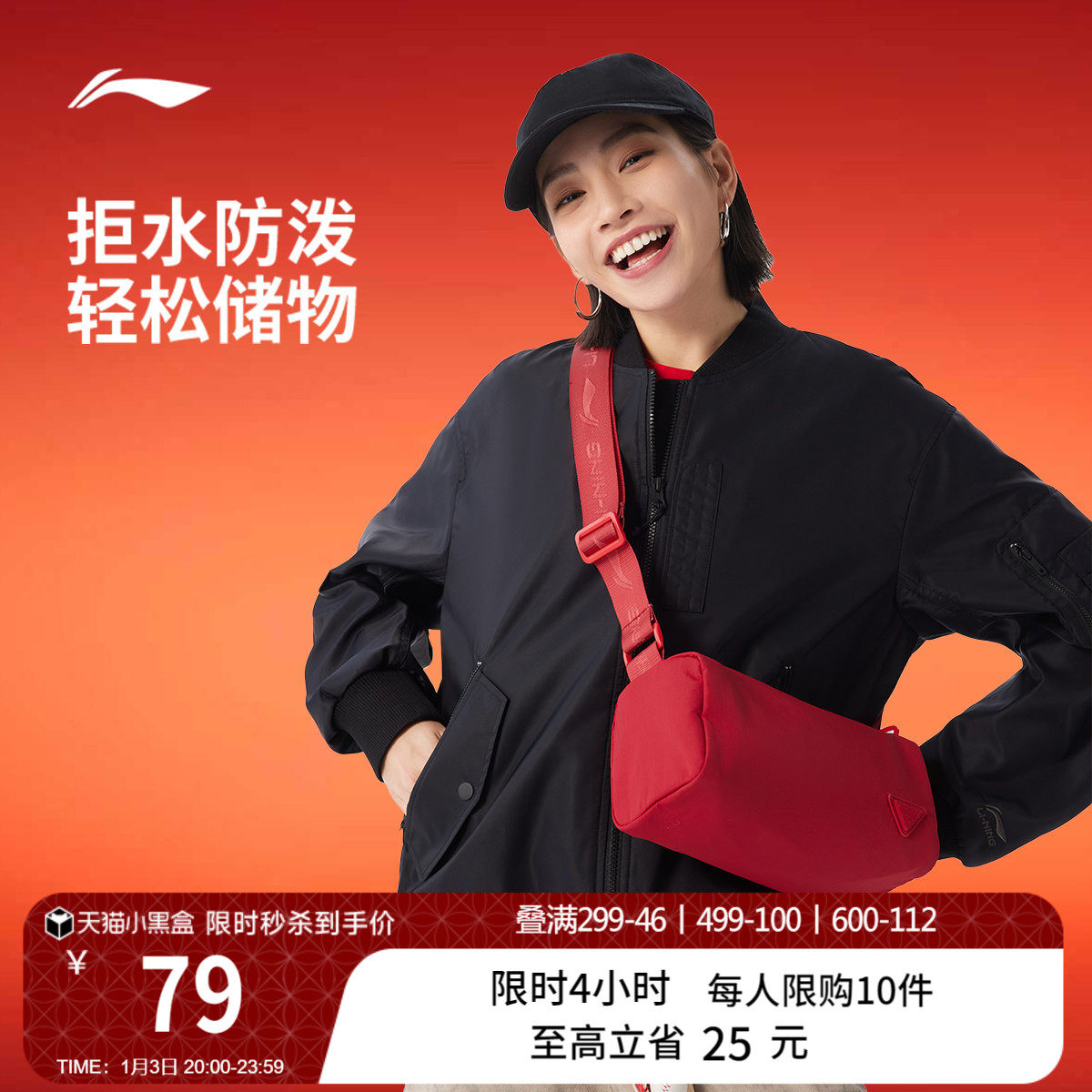李宁斜挎包男女新年鸿运穿搭红色吐司包休闲户外运动出行小挎包
