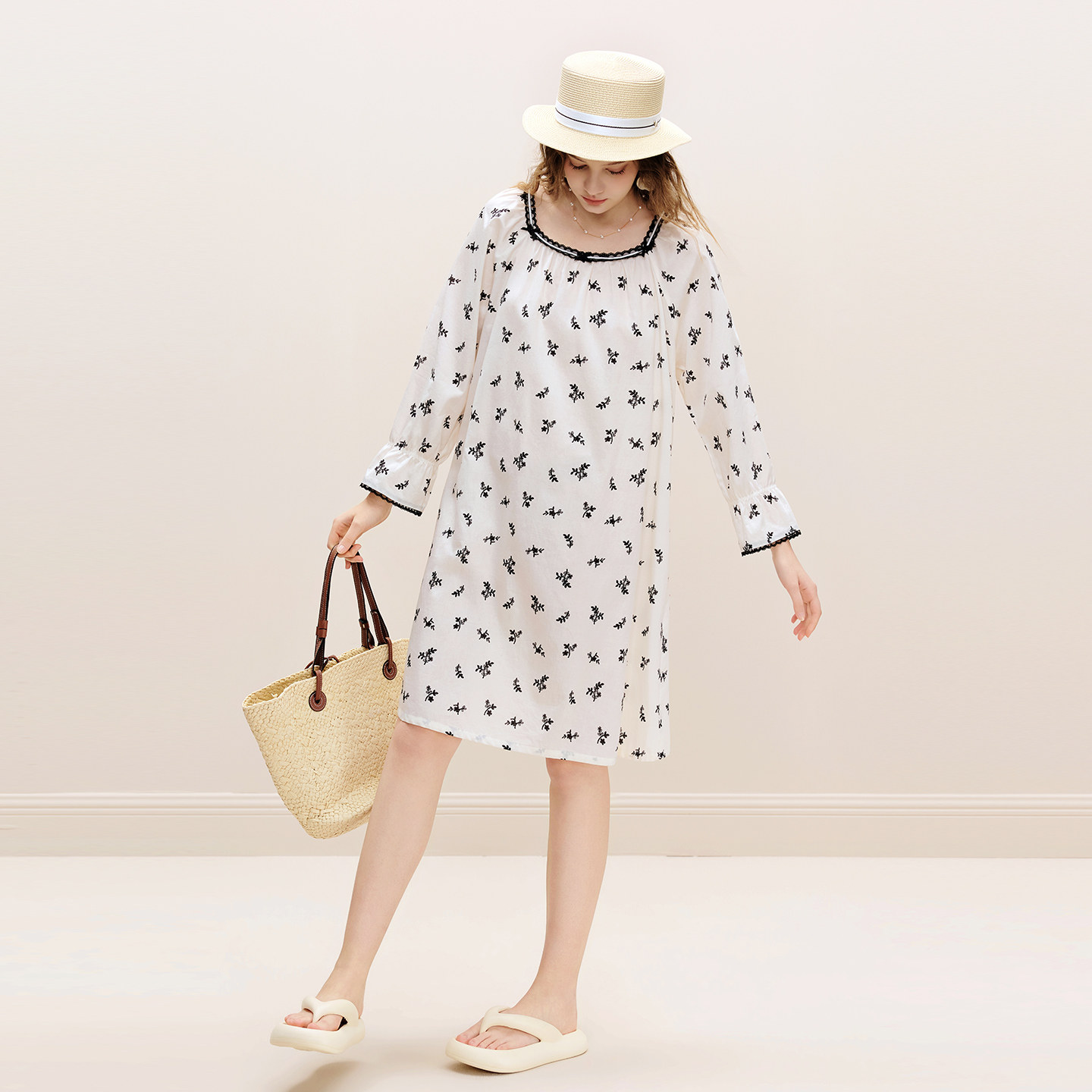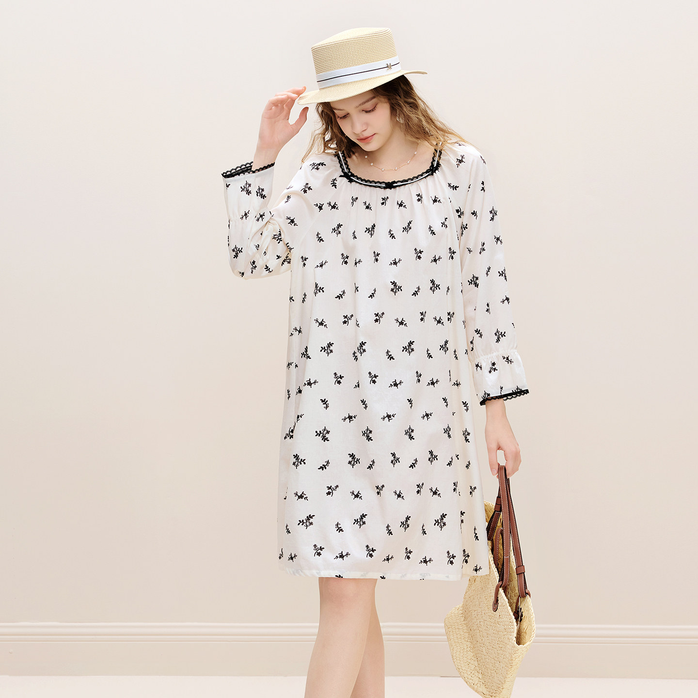 美标2026春夏新品女士纯棉长袖睡裙高支贡缎全棉睡衣可外穿家居服