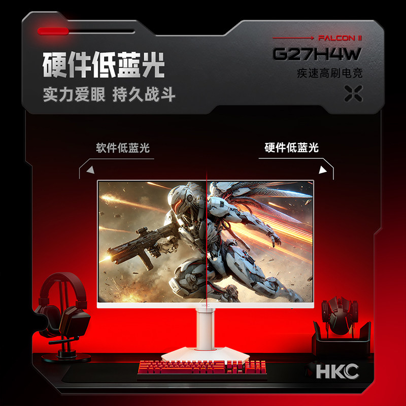【天猫自营】HKC27英寸显示器白色2K电竞320hz台式G27H4W猎鹰二代
