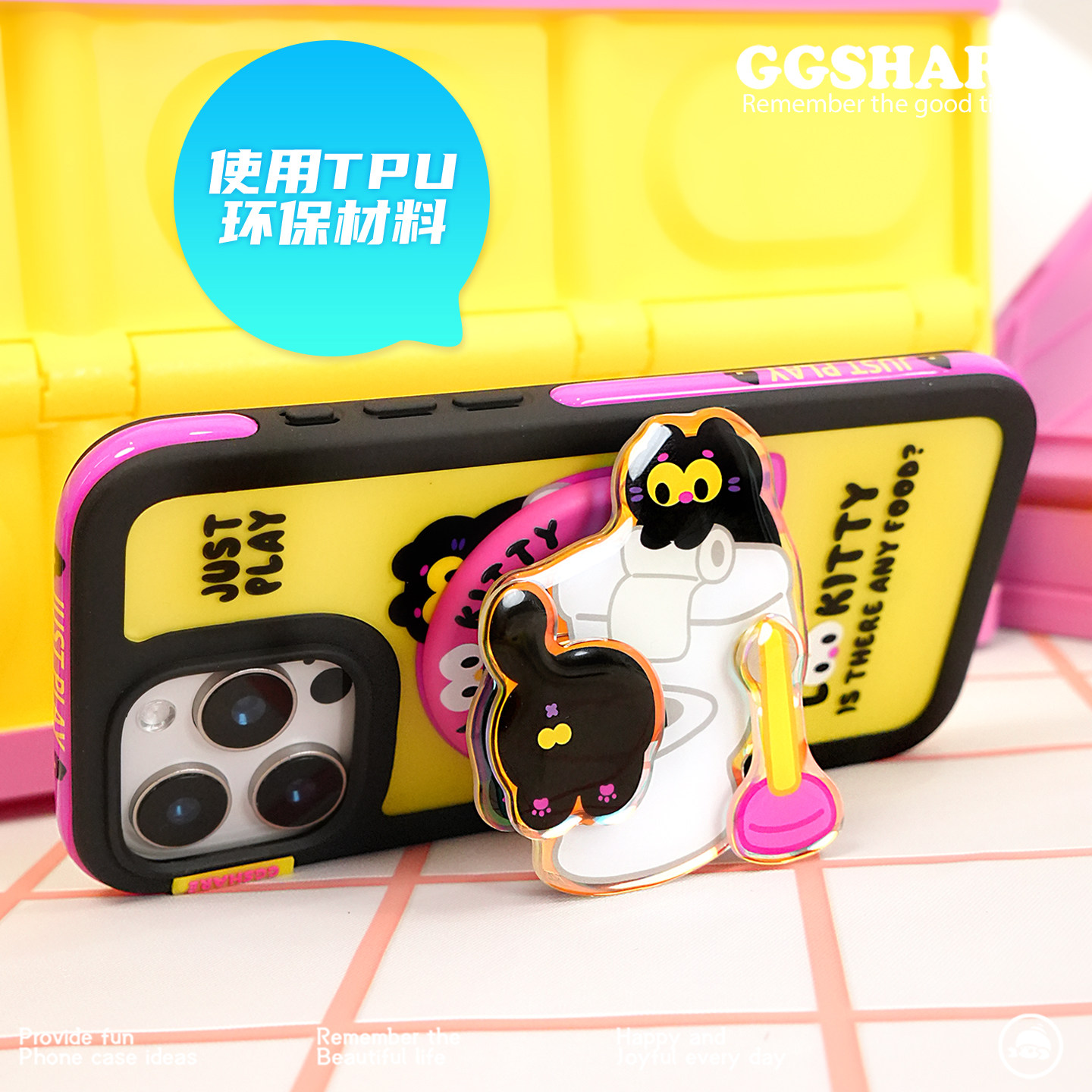 寄居蟹原创马桶猫iPhone17手机壳适用苹果17promax磁吸支架 新品16pro保护套防摔超好看卡通15磨砂背板挂绳14