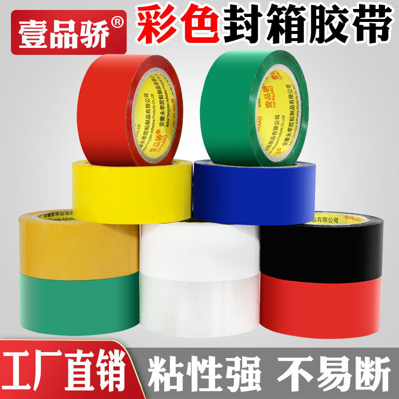 彩色封箱胶带红色黄色蓝色绿色白色黑色胶布封箱透明胶打包胶带快递封口胶纸包装胶条100米长高粘整箱批发