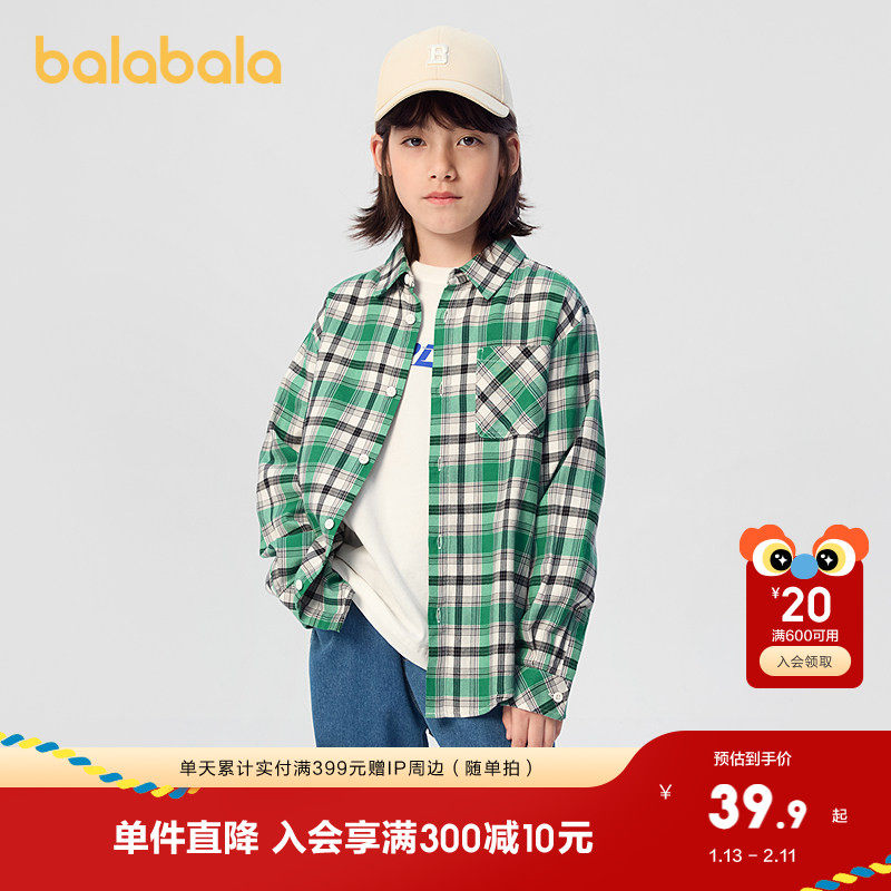 巴拉巴拉儿童衬衫男童衬衣长袖春秋装女童格纹外套中大童时尚舒适