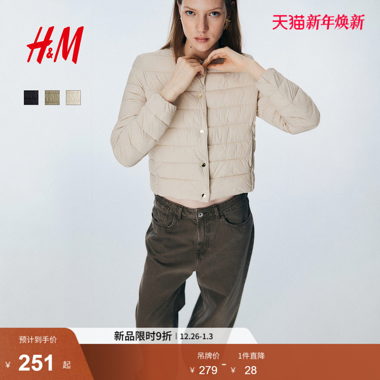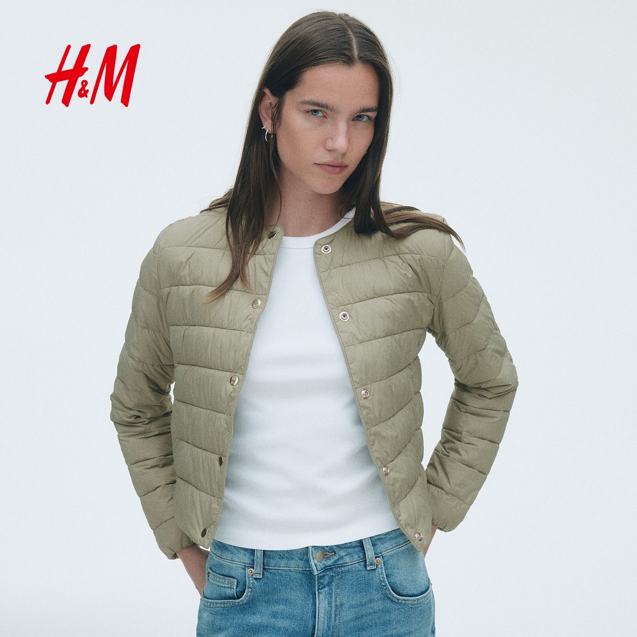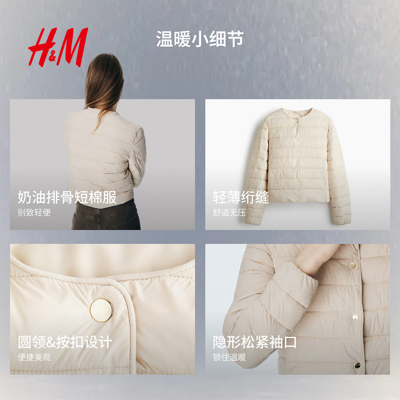 HM女装棉服2025冬新款里外皆暖穿搭绗缝尼龙夹棉排骨外套1294649