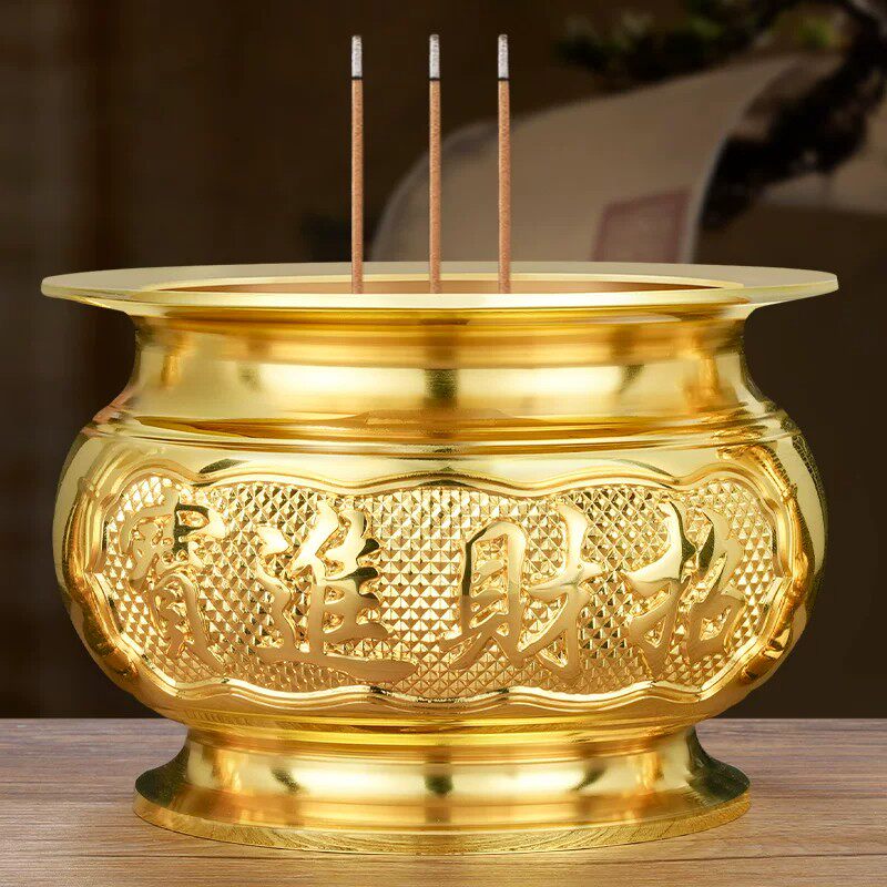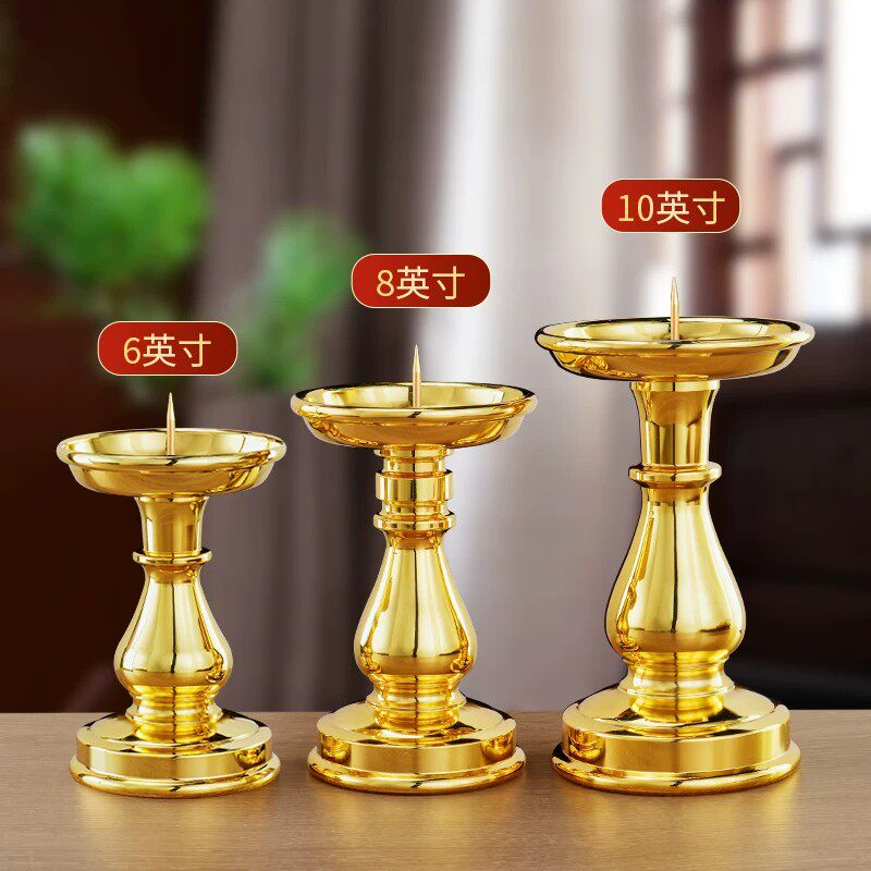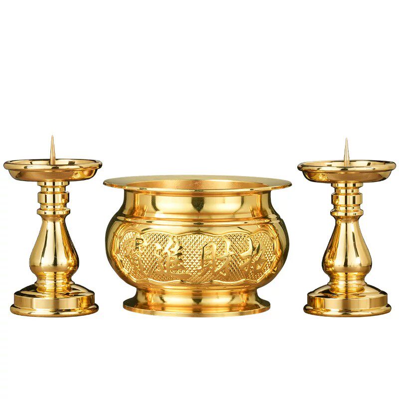 纯黄铜合金香炉家用供奉蜡烛台座三件套供佛关公财神爷专用佛堂