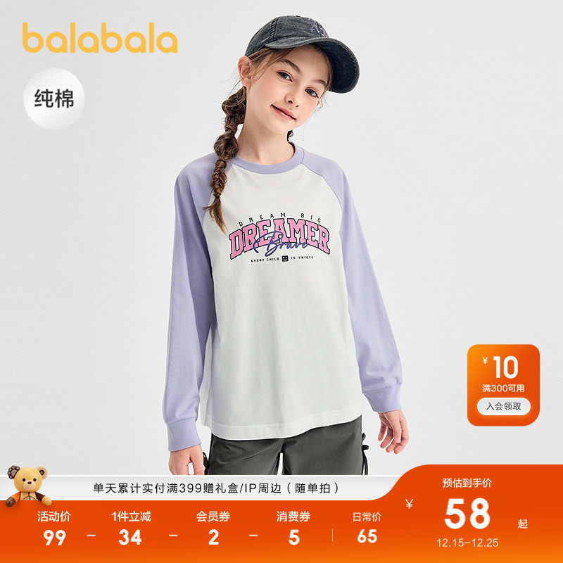 【商场同款】巴拉巴拉儿童长袖t恤男童女童2025秋季新款纯棉上衣