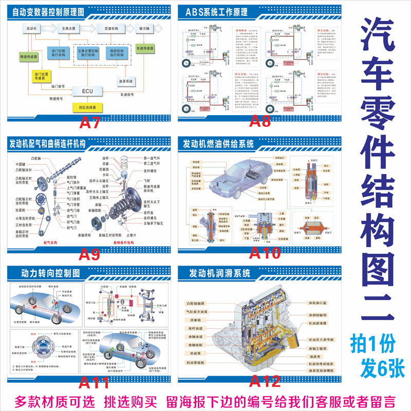 汽车构造发动机整体结构4S店常规保养修车厂挂图海报贴壁装饰画
