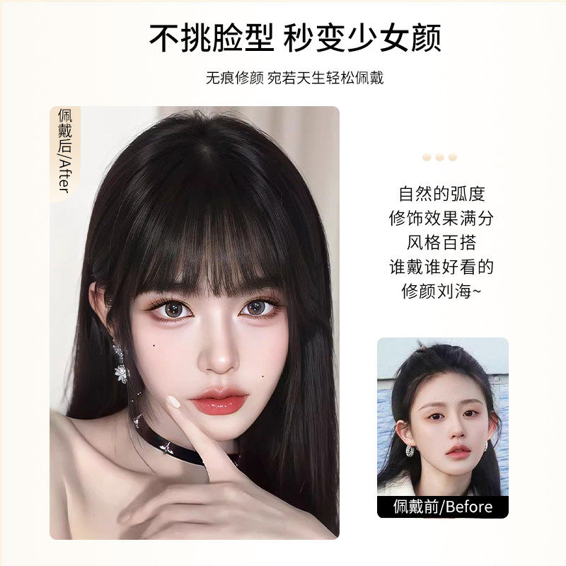 漫画刘海假发女自然前额全真发轻薄无痕假发片头顶蓬松空气假刘海