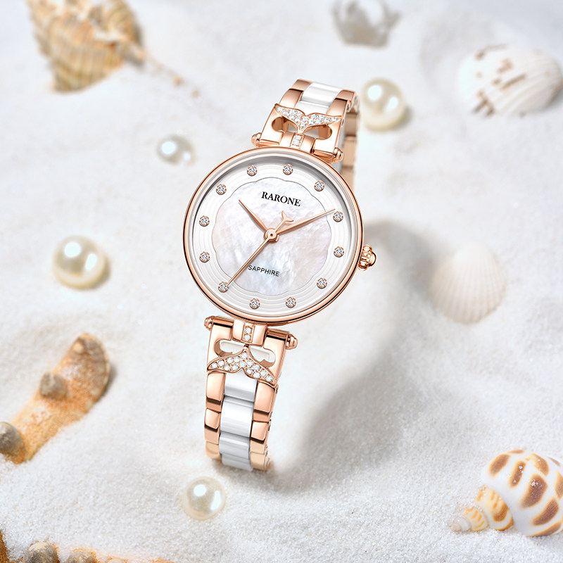 Rarone雷诺美人鱼手表女款陶瓷轻奢石英腕表送女友