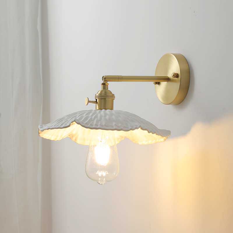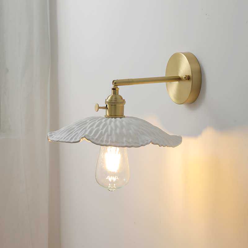 日式简约全铜客厅卧室床头灯样板房北欧书房餐厅带开关陶瓷壁灯