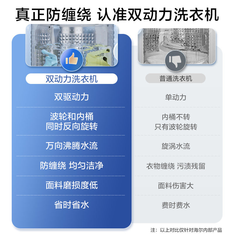 [云溪4.0]海尔双动力防缠绕波轮洗衣机10公斤直驱变频家用全自动