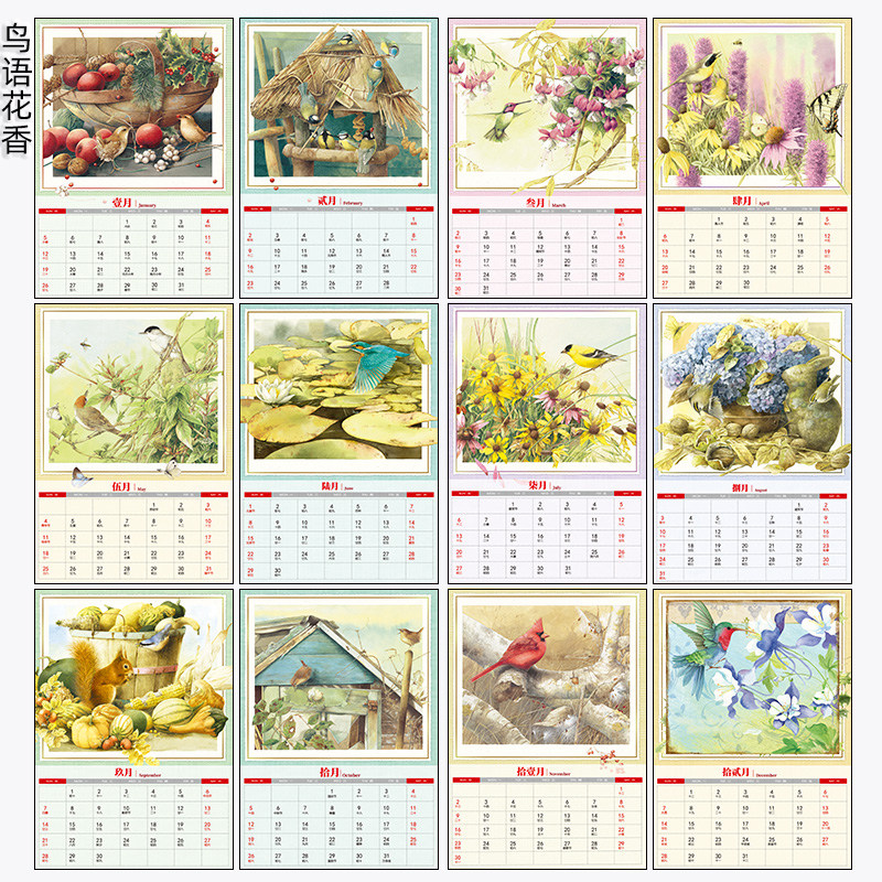 挂历2026年鸟语花香创意简约办公月历人气新款工作打卡日历印刷
