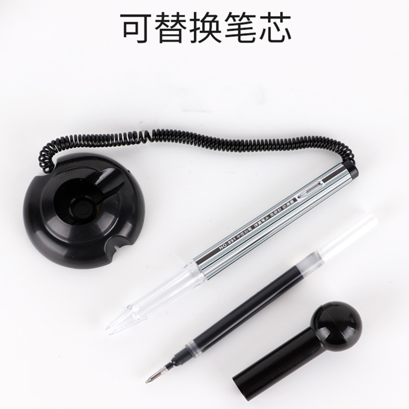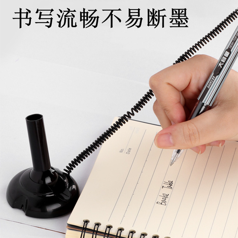 宝克台笔大容量加粗笔芯带线办公签字笔带绳中性水笔黑色0.5前台桌面固定笔座粘在桌子上防丢吧台柜台服务台
