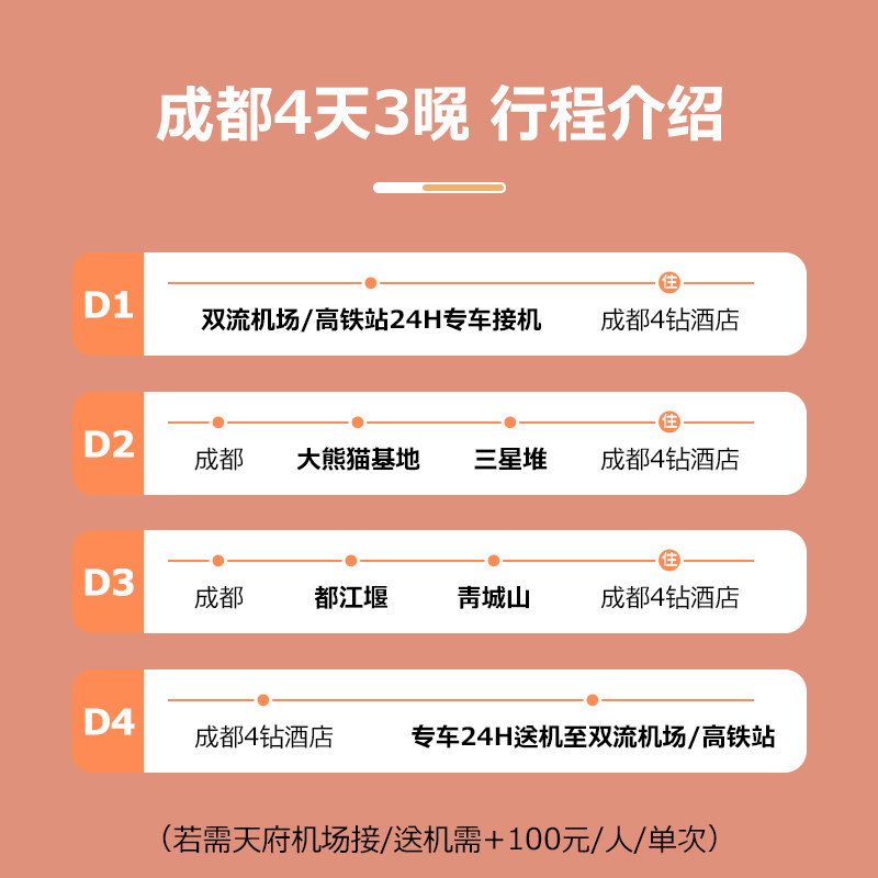 【烈儿宝贝直播间】成都4天3晚旅游熊猫基地都江堰三星堆-住4钻