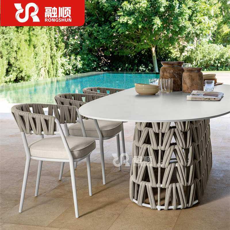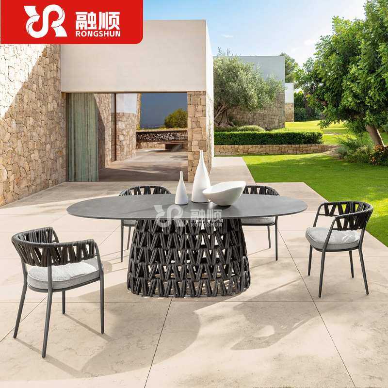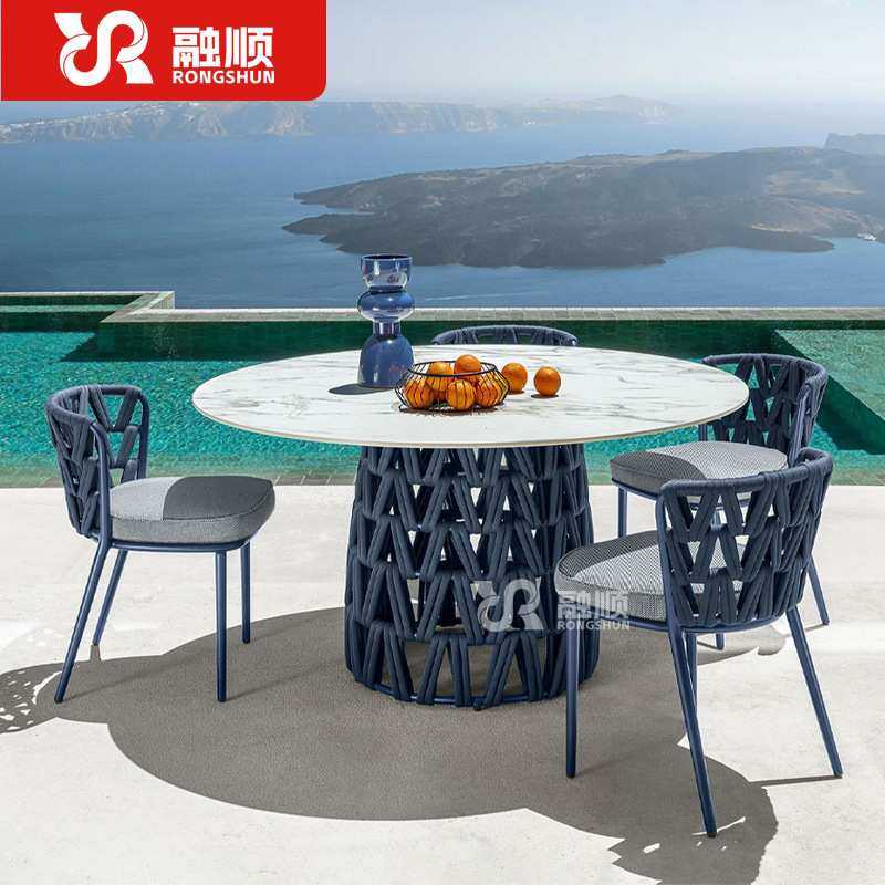 户外桌椅岩板庭院防雨防晒露天别墅室外藤编椅餐厅酒外摆花园家具