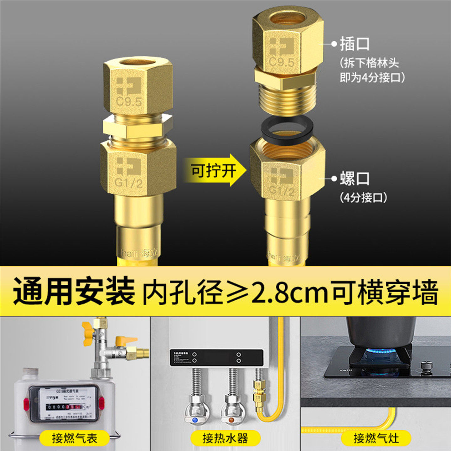 2026新国标不锈钢波纹燃气管天然煤气热水器管道软管专用连接管子